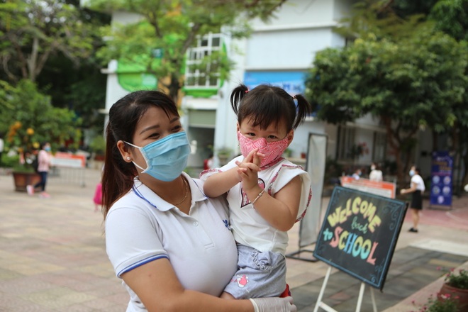 Hôm nay, học sinh hệ mầm non cũng được quay trở lại trường sau thời gian dài nghỉ để phòng dịch Covid-19.