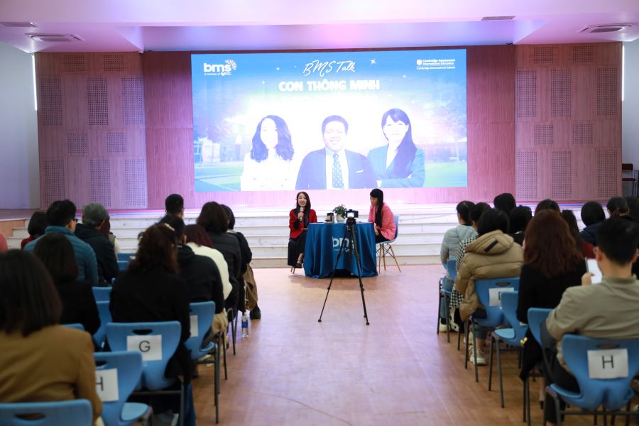 Trong khi các "sĩ tử nhí" thử sức với bài thi năng lực Ngôn ngữ - Tư duy - Tiếng Anh, các bậc Cha mẹ đã cùng tham gia Talkshow “Con thông minh theo cách nào?” cùng diễn giả nổi tiếng - cô Phan Hồ Điệp. Trong không gian hội trường ấm áp và tràn đầy năng lượng, chương trình mở đầu bằng một màn đồng diễn thể chất Nhật Bản đặc sắc do BMSers thực hiện. Từng động tác mạnh mẽ, đồng đều và đầy kỷ luật của các em không chỉ thể hiện tinh thần rèn luyện nghiêm túc mà còn mang đến nguồn cảm hứng tích cực lan tỏa khắp khán phòng.
