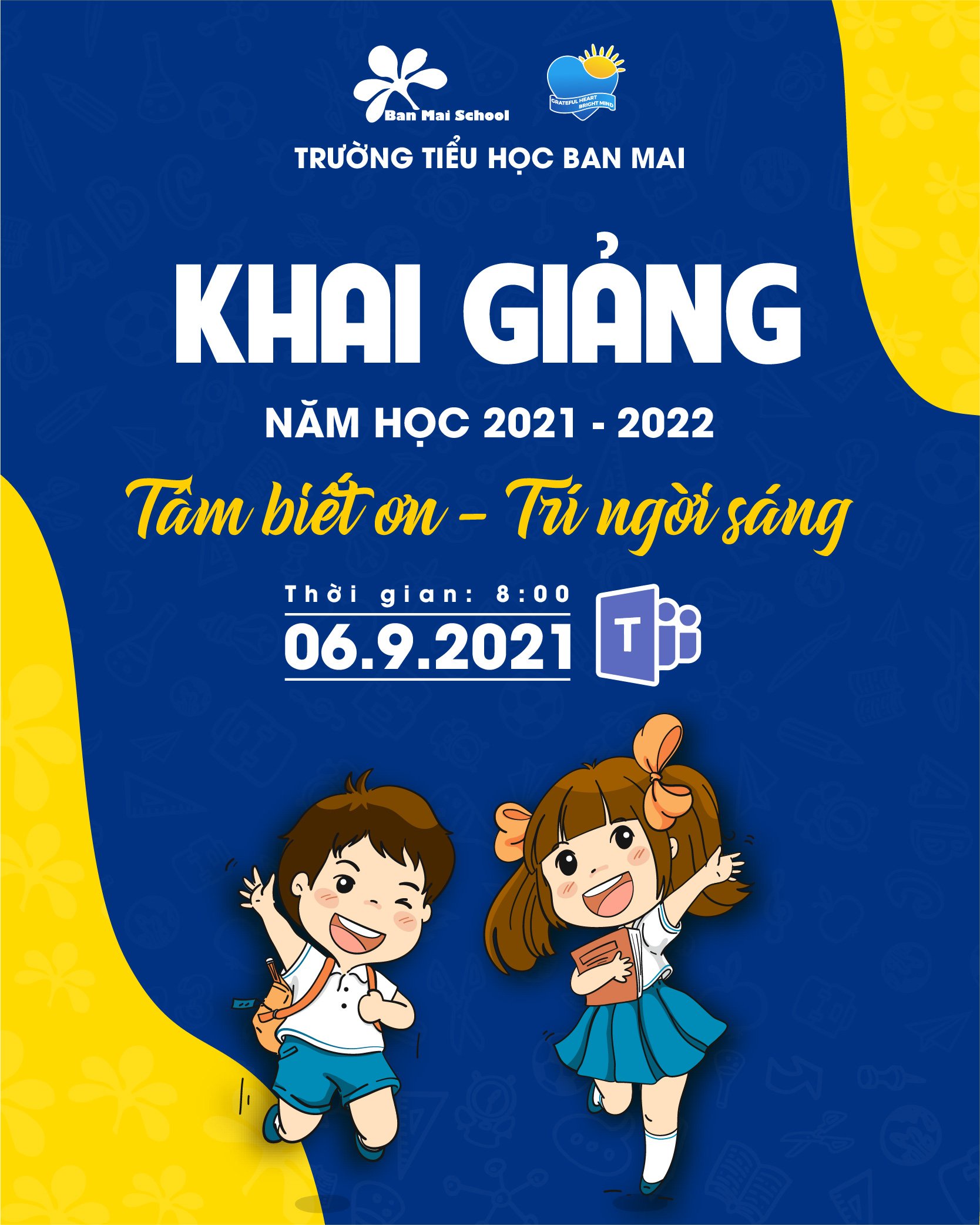 Lễ khai giảng online năm học 2021 – 2022 sẽ được diễn ra vào 8h00″ thứ Hai – ngày 6/9/2021 với chủ đề: TÂM BIẾT ƠN – TRÍ NGỜI SÁNG.