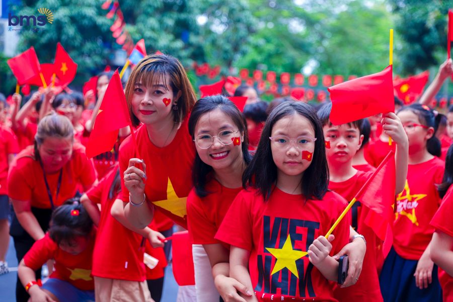 Tự hào là công dân Việt Nam, là những BMSers mang trong tim ngọn lửa yêu nước bền bỉ, cháy sáng mãi theo thời gian. Hôm nay, các em cười thật tươi, nắm tay nhau thật chặt, hát vang Quốc ca và cùng nhau thắp lên trong tim mình niềm tin, niềm tự hào về quê hương yêu dấu.