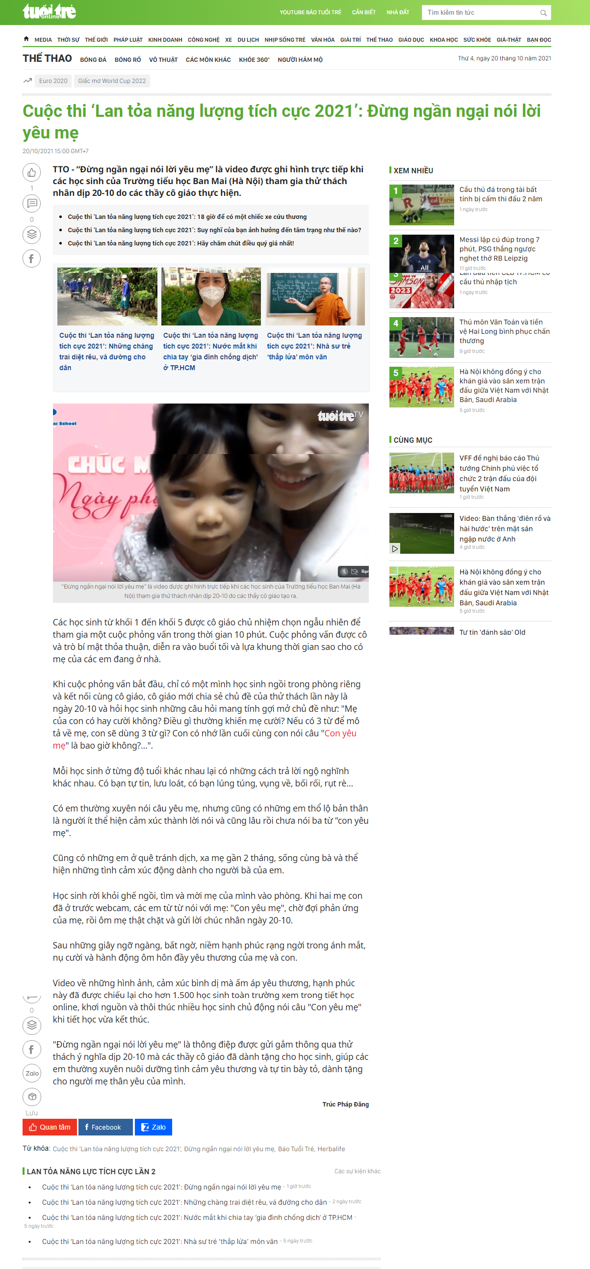 Link nguồn: https://tuoitre.vn/cuoc-thi-lan-toa-nang-luong-tich-cuc-2021-dung-ngan-ngai-noi-loi-yeu-me-20211020140607508.htm