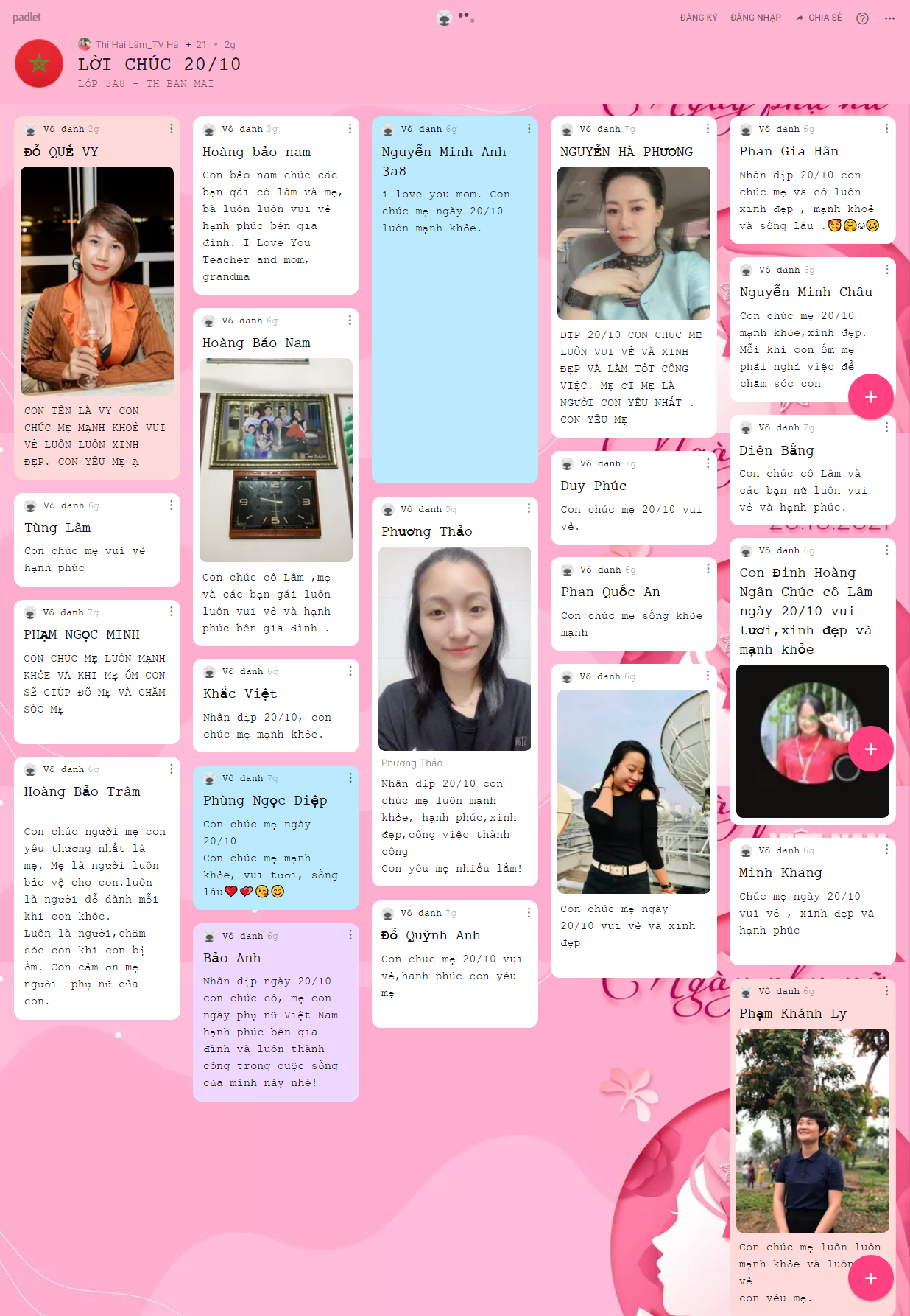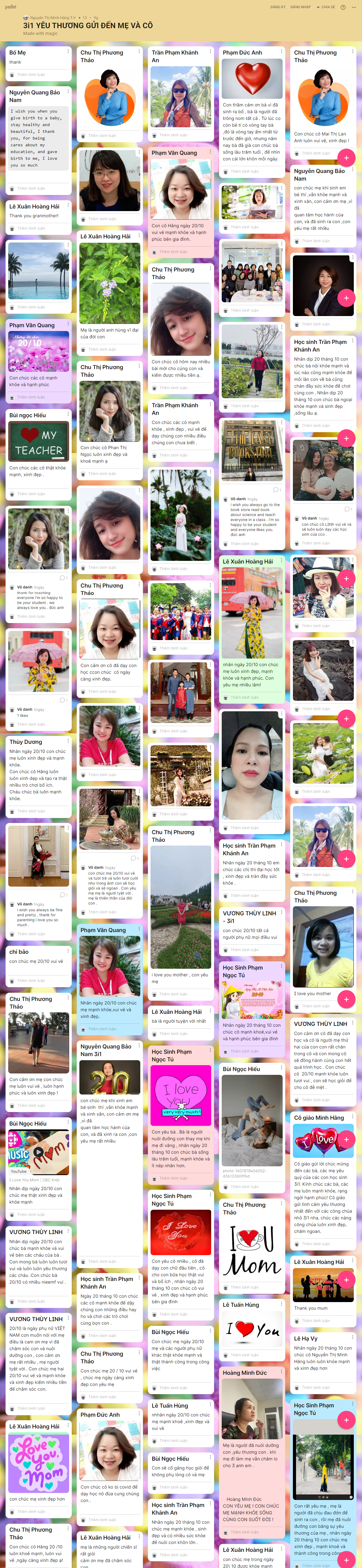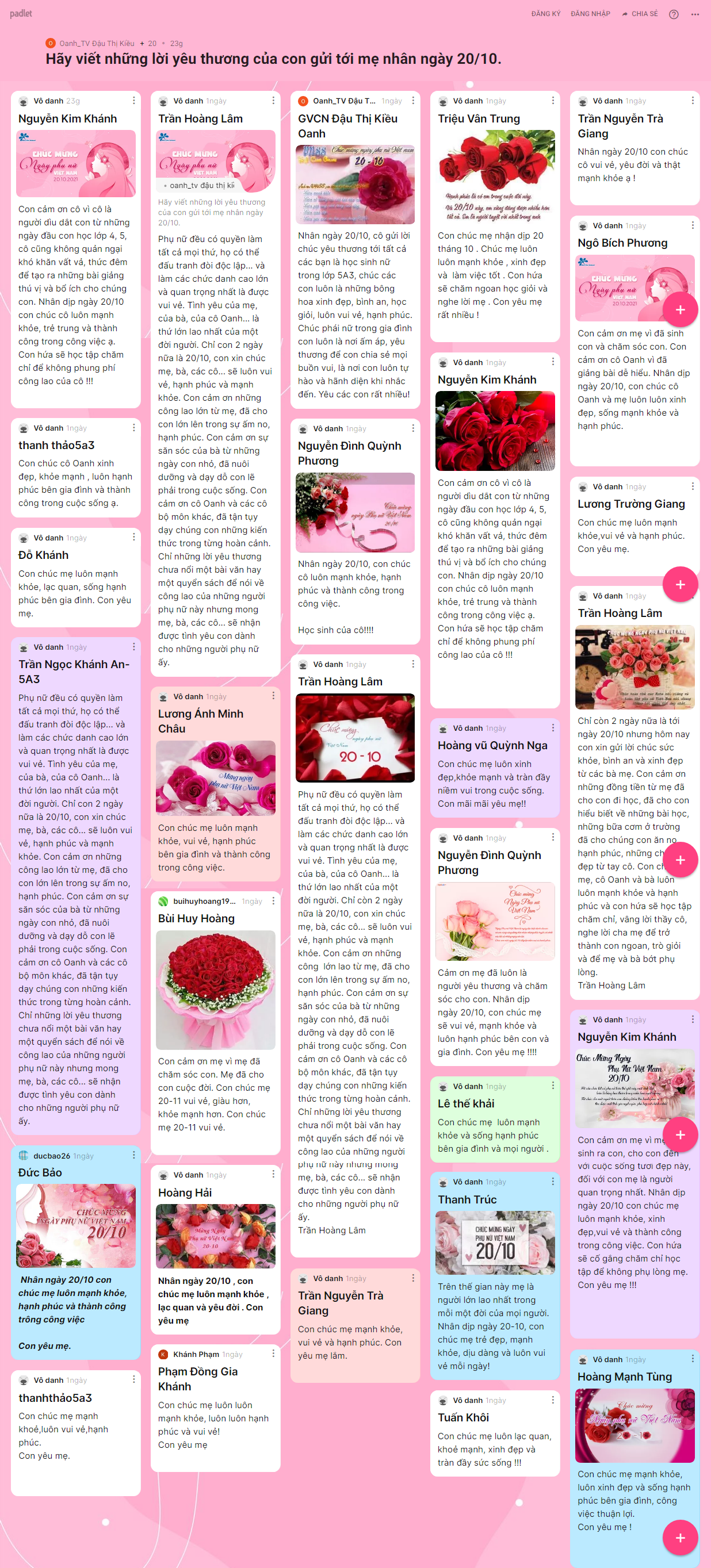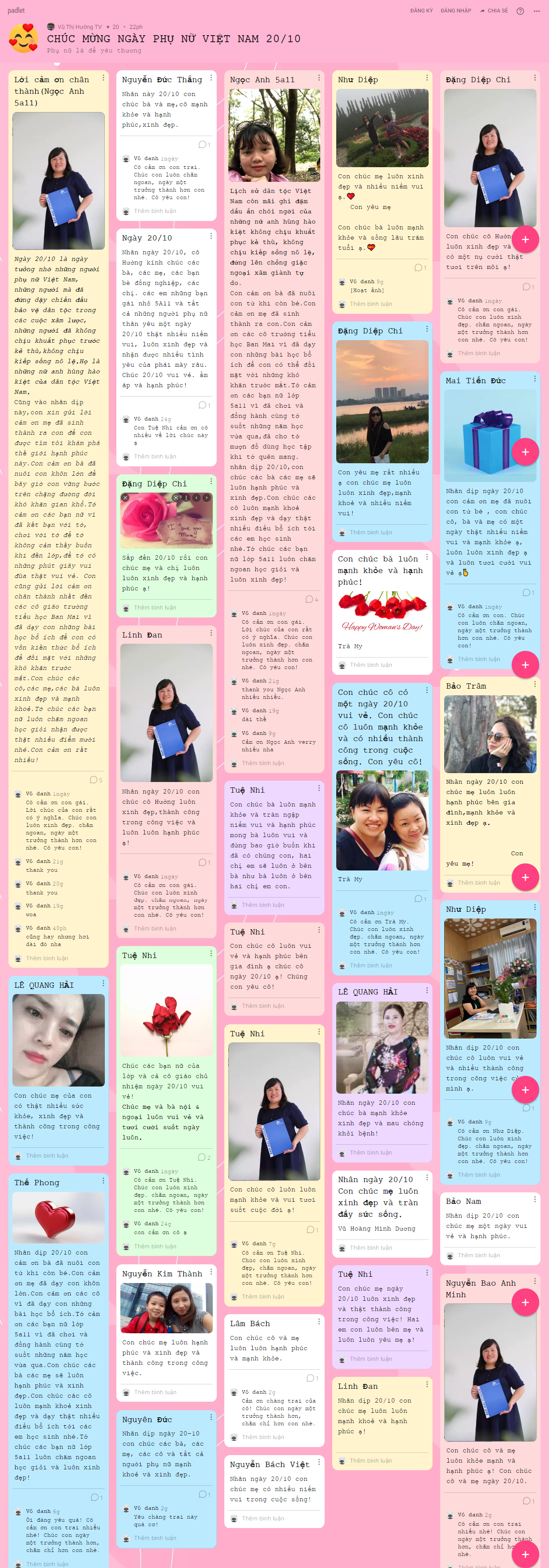 Những hình ảnh, lời chúc yêu thương được hơn 1500 BMSers các khối lớp chia sẻ trên trang palet đã lưu giữ lại nhiều điều ý nghĩa cho chính các con và những người phụ nữ con yêu thương trong ngày 20/10 năm nay.