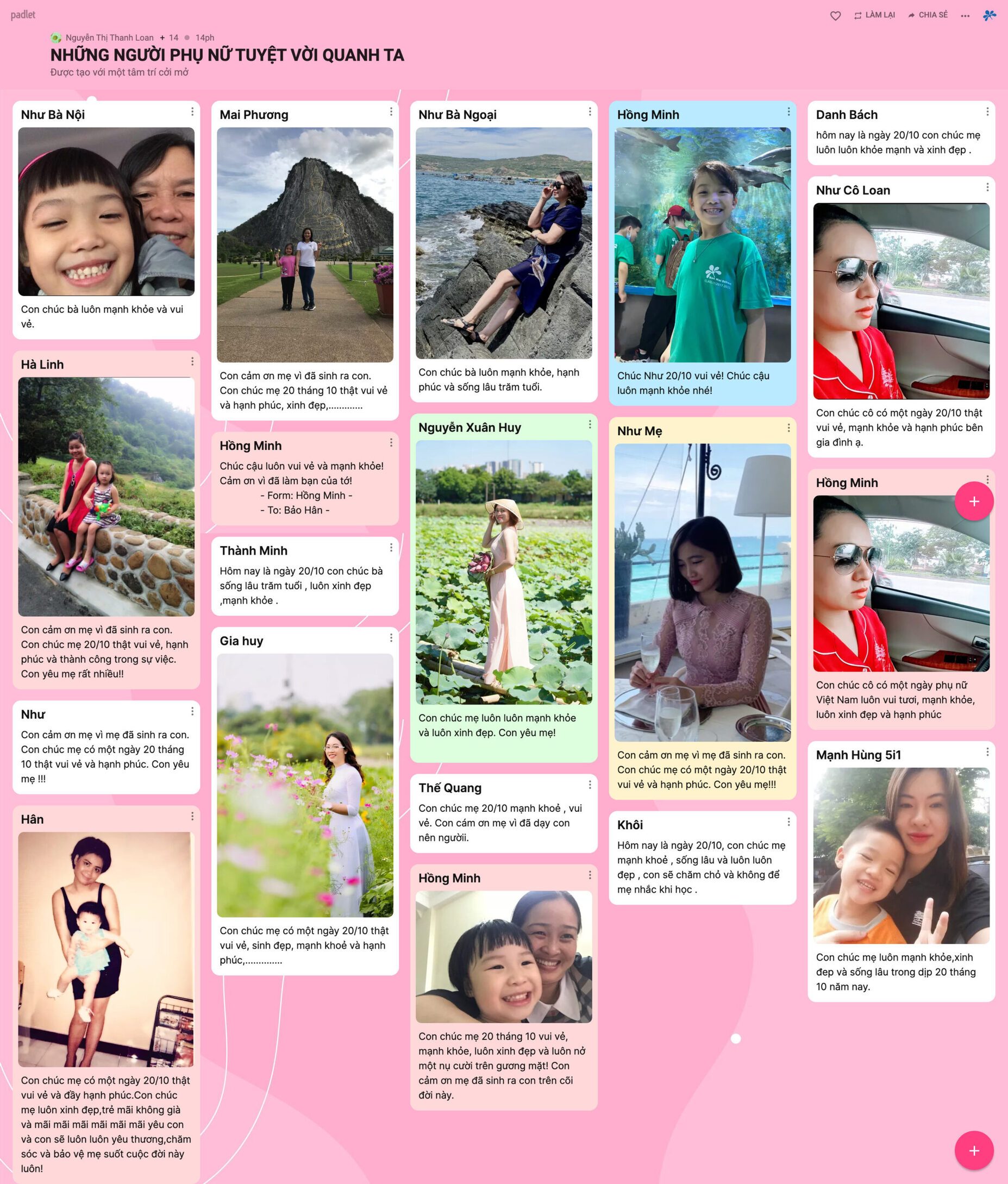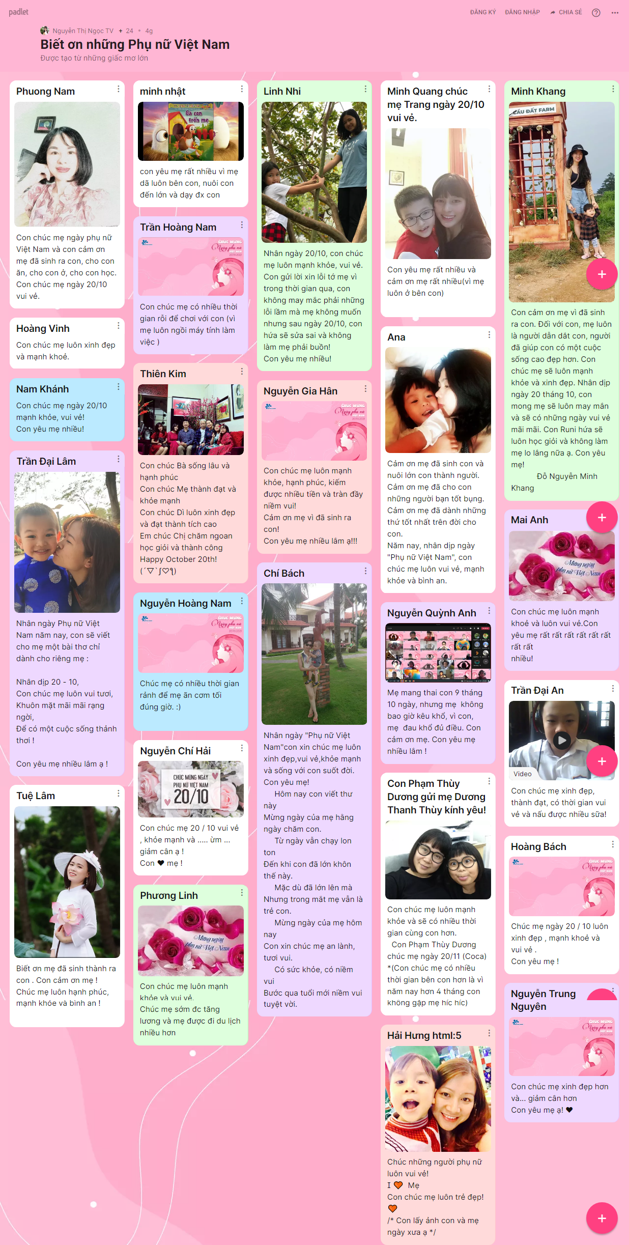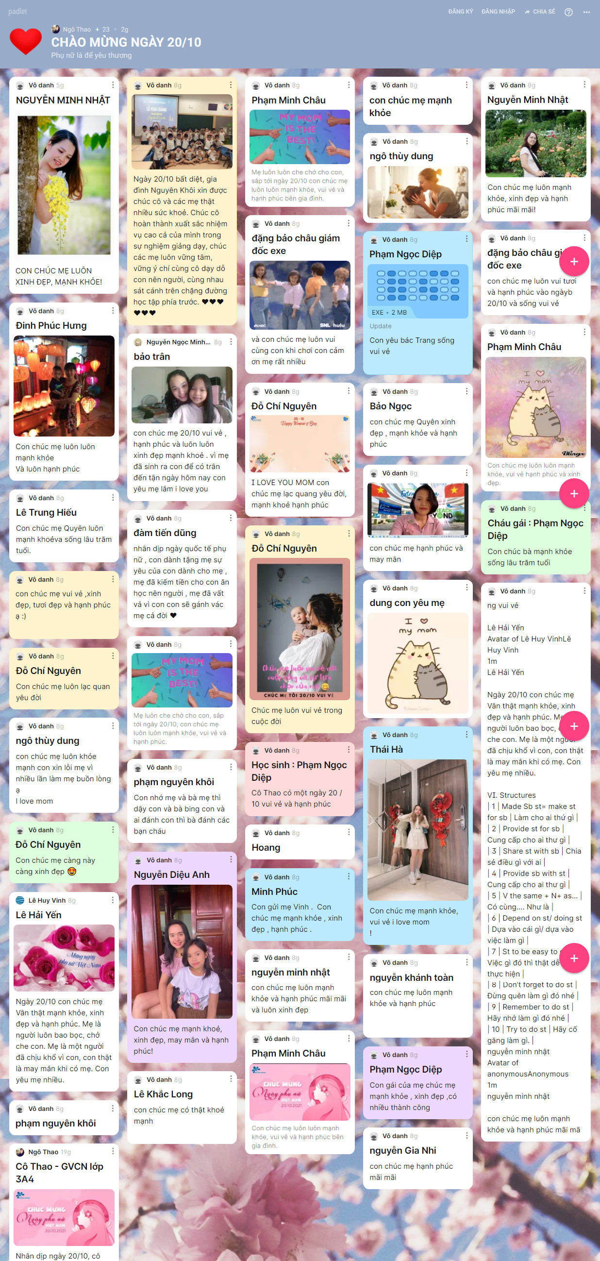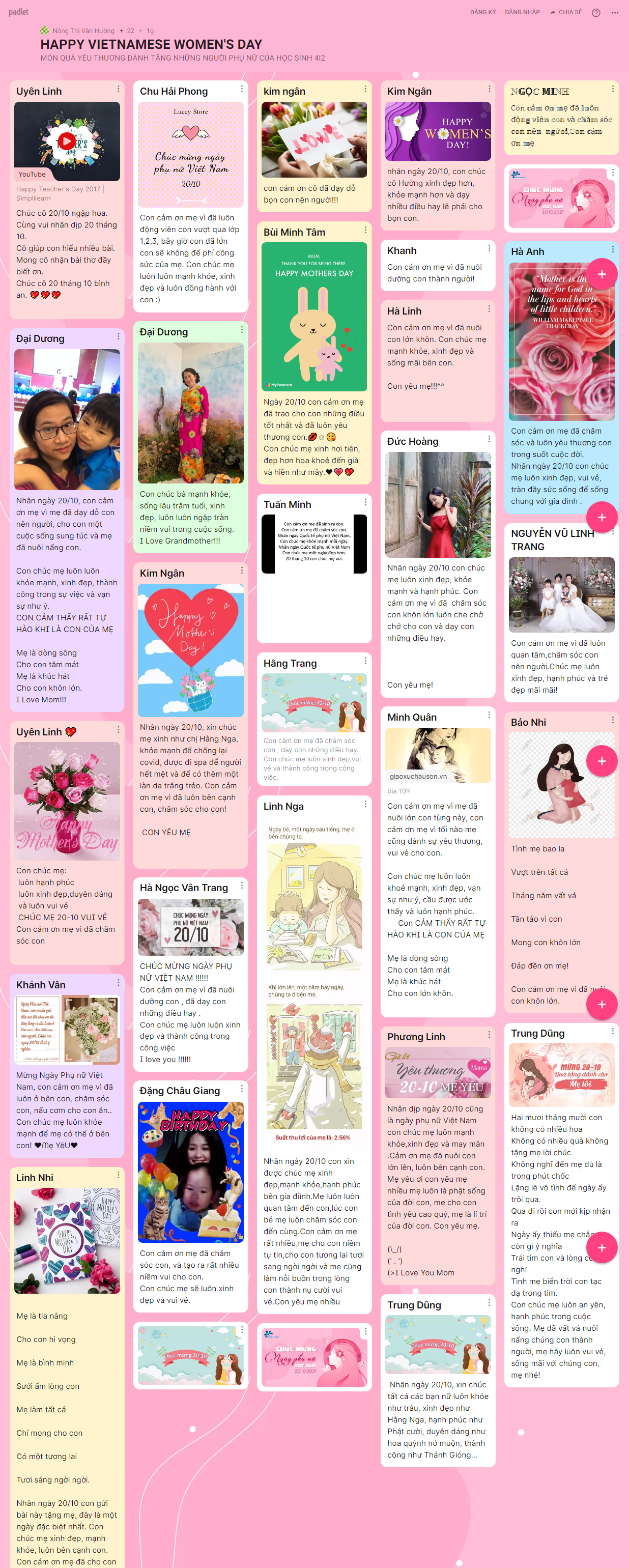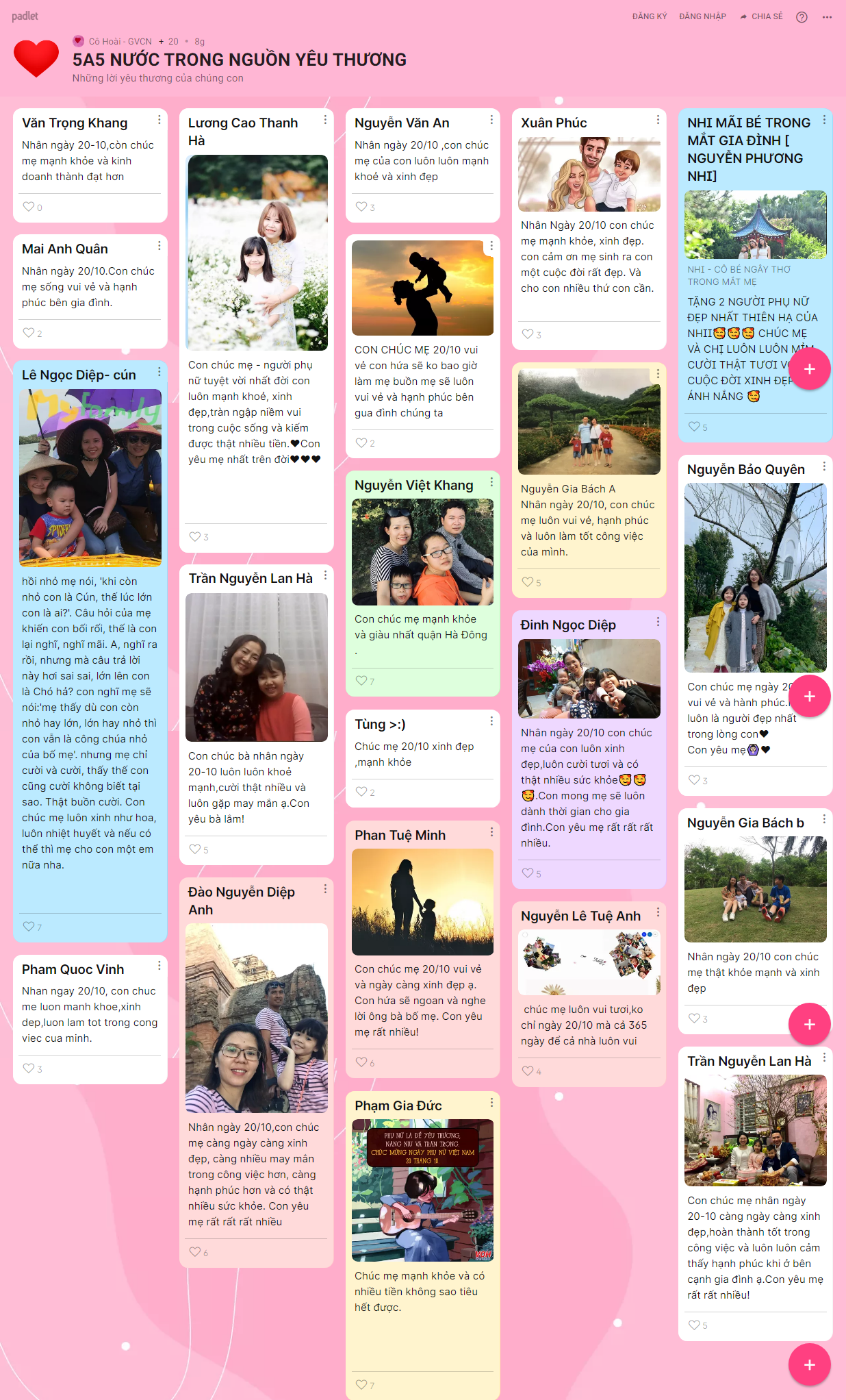 Những hình ảnh, lời chúc yêu thương được hơn 1500 BMSers các khối lớp chia sẻ trên trang palet đã lưu giữ lại nhiều điều ý nghĩa cho chính các con và những người phụ nữ con yêu thương trong ngày 20/10 năm nay.