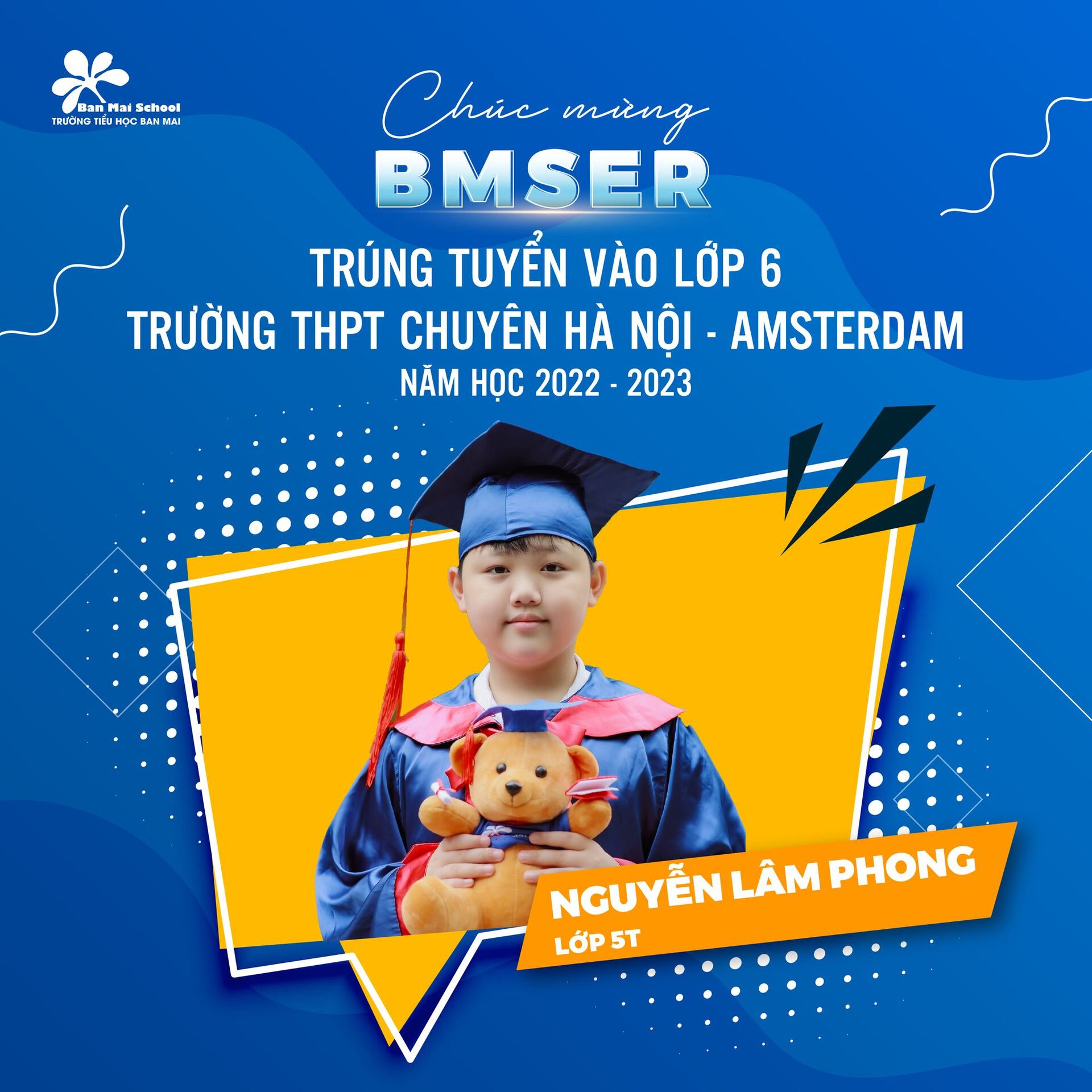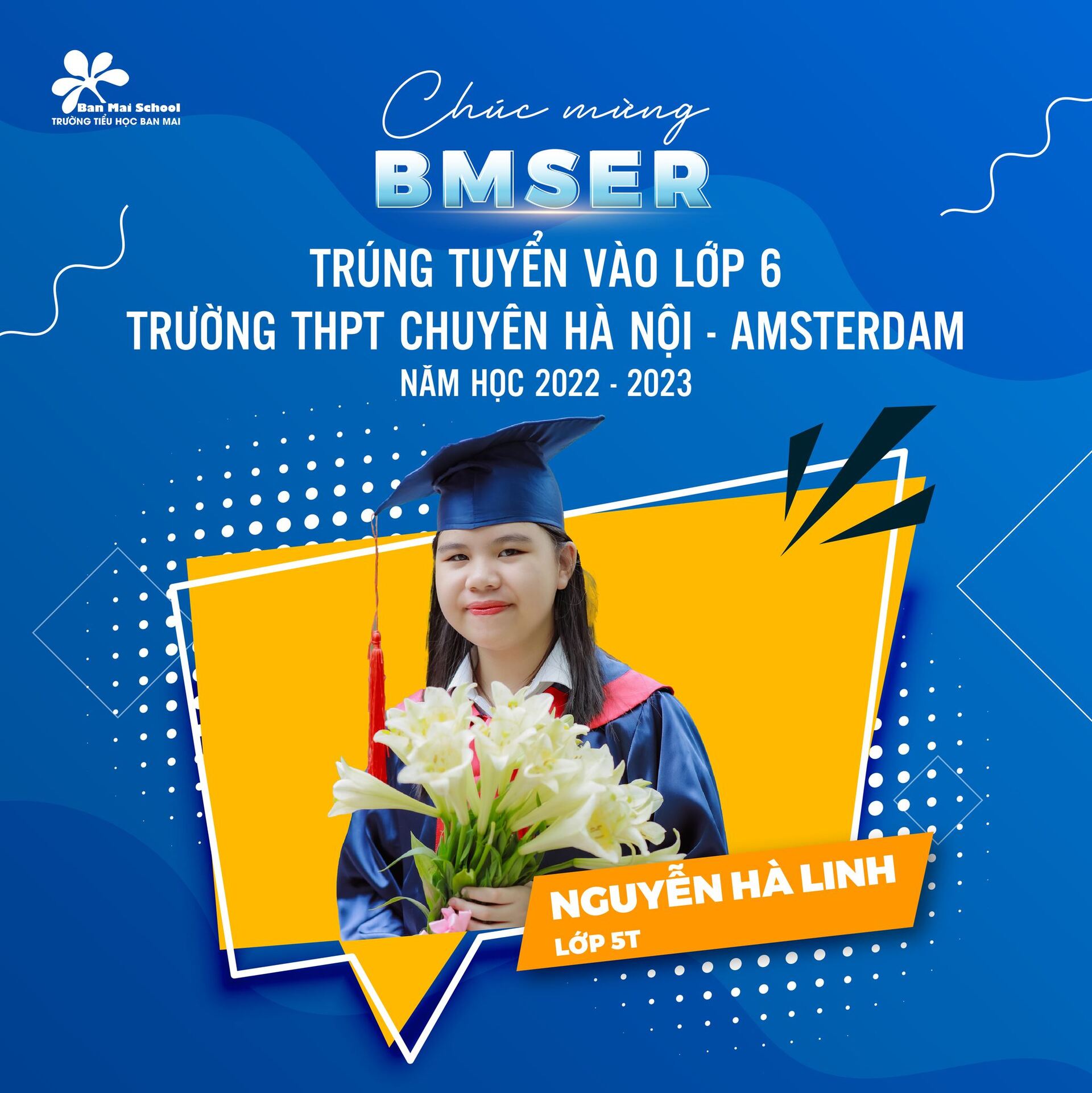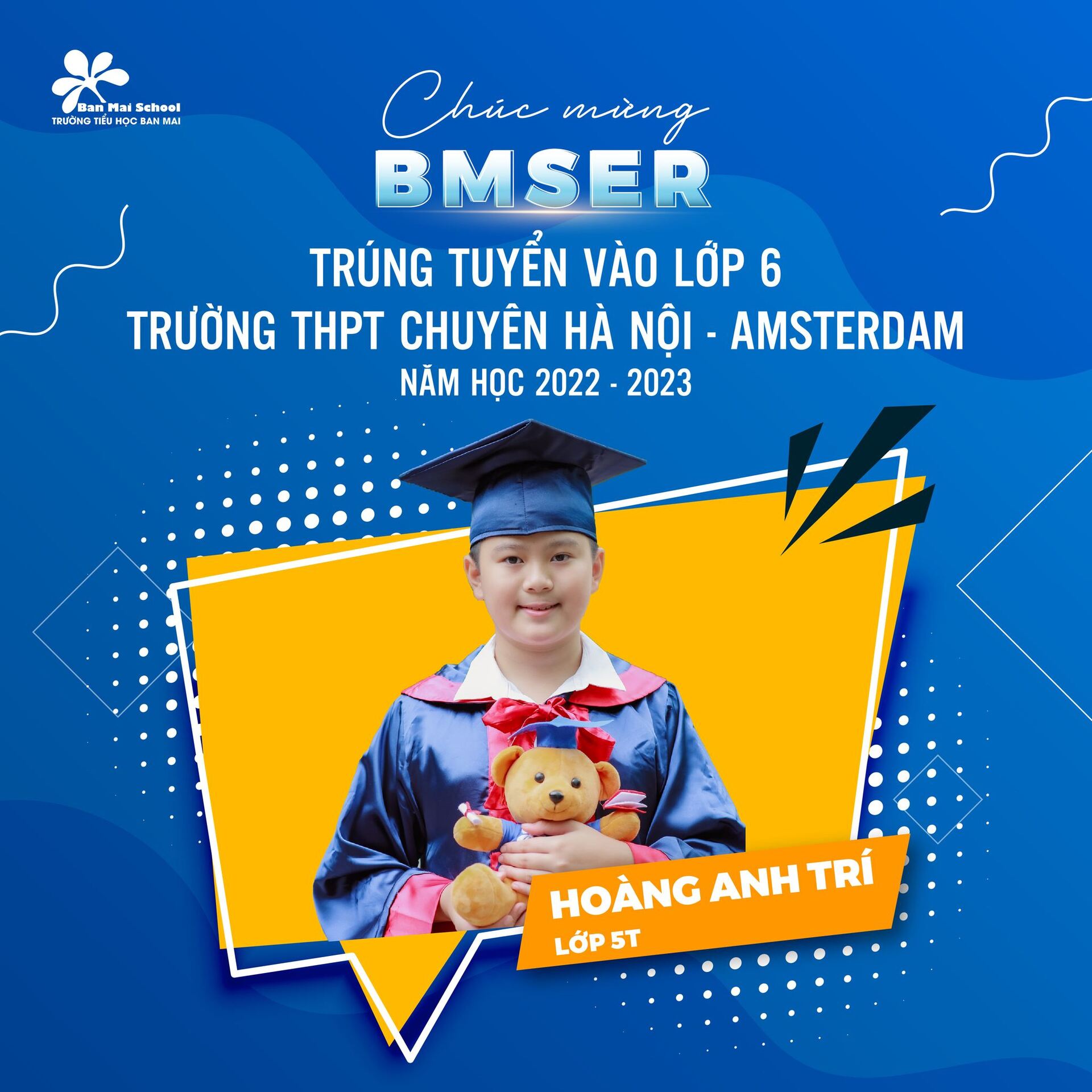 Chúc mừng tất cả các BMSers khối 5 (khóa 2017 – 2022) đã tỏa sáng ở năm học cuối cấp và tiếp tục mang nhân cách, trí tuệ của người Ban Mai làm hành trang ở bậc học THCS.