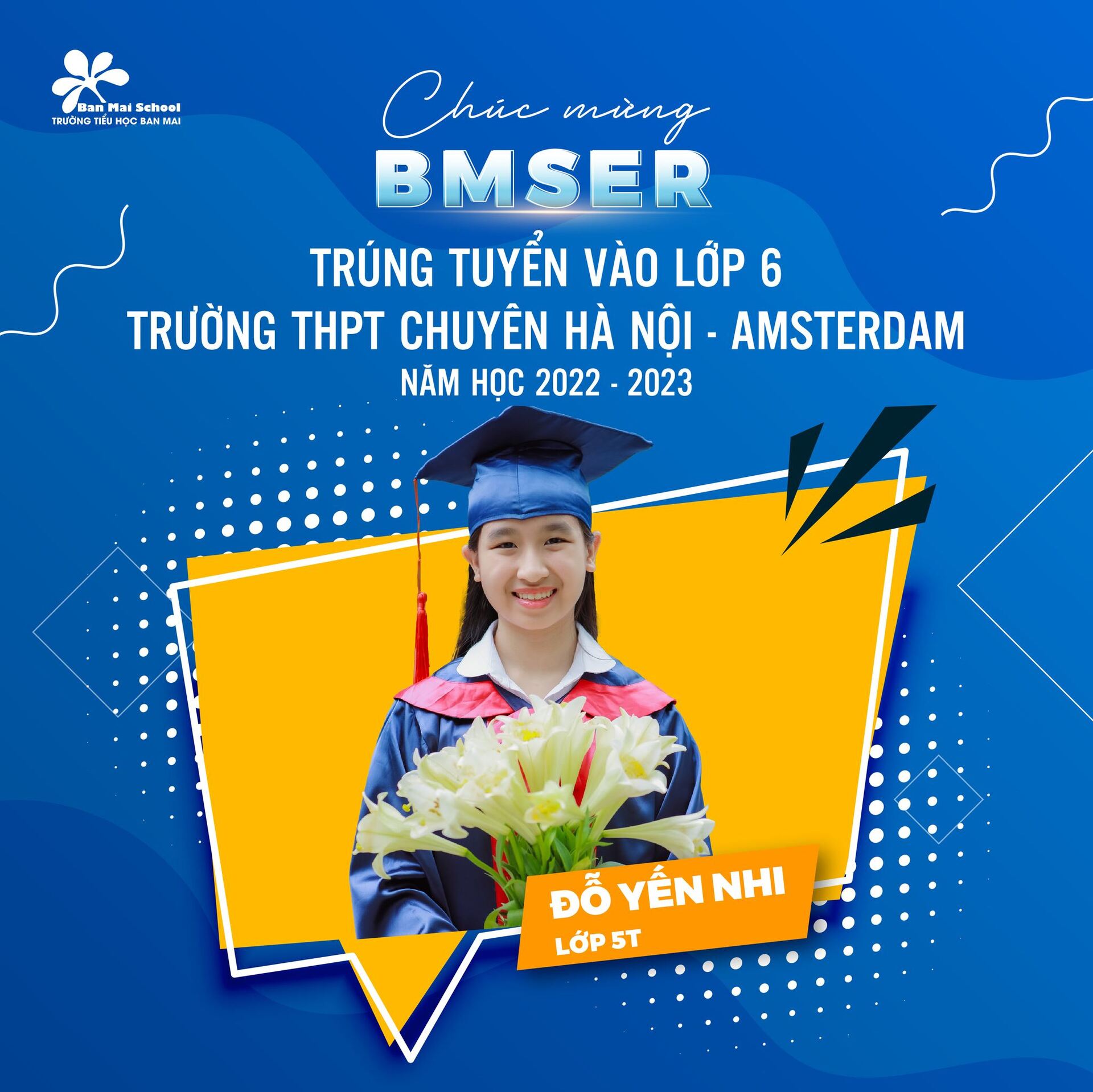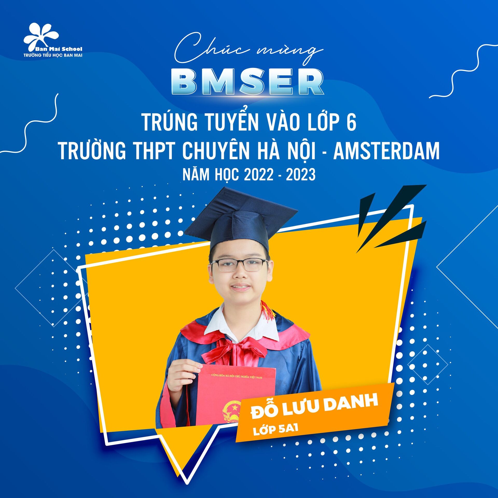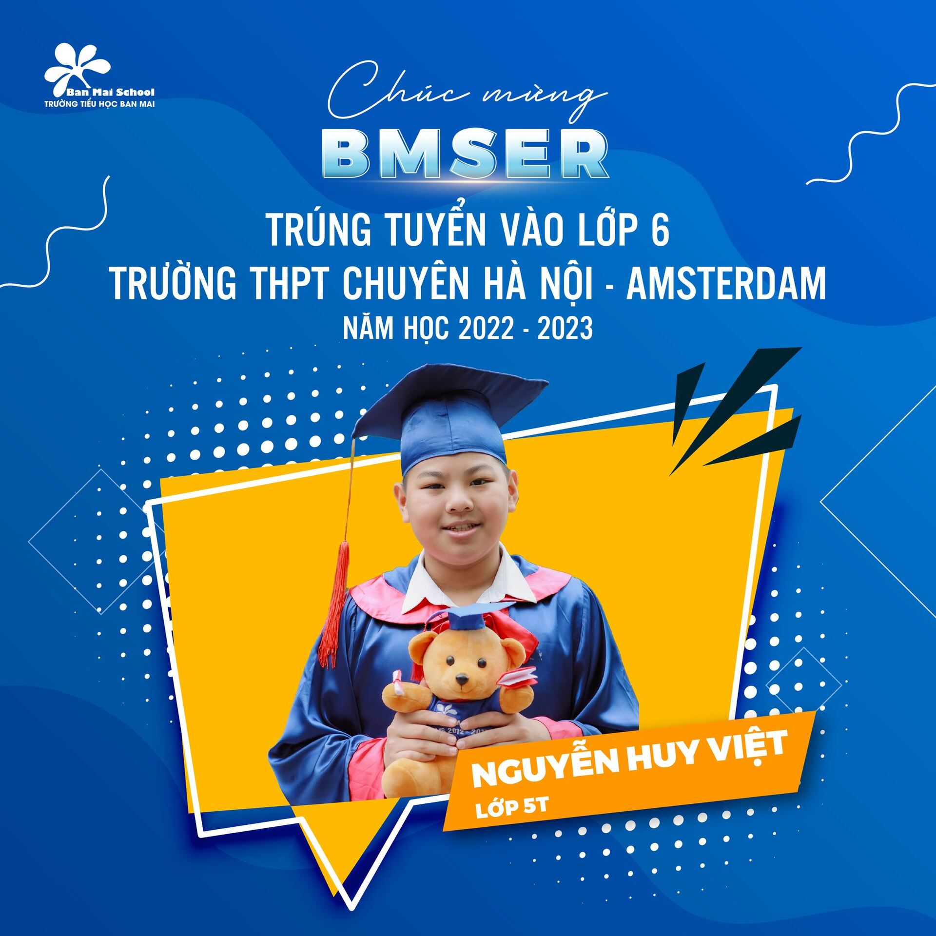 Chúc mừng tất cả các BMSers khối 5 (khóa 2017 – 2022) đã tỏa sáng ở năm học cuối cấp và tiếp tục mang nhân cách, trí tuệ của người Ban Mai làm hành trang ở bậc học THCS.