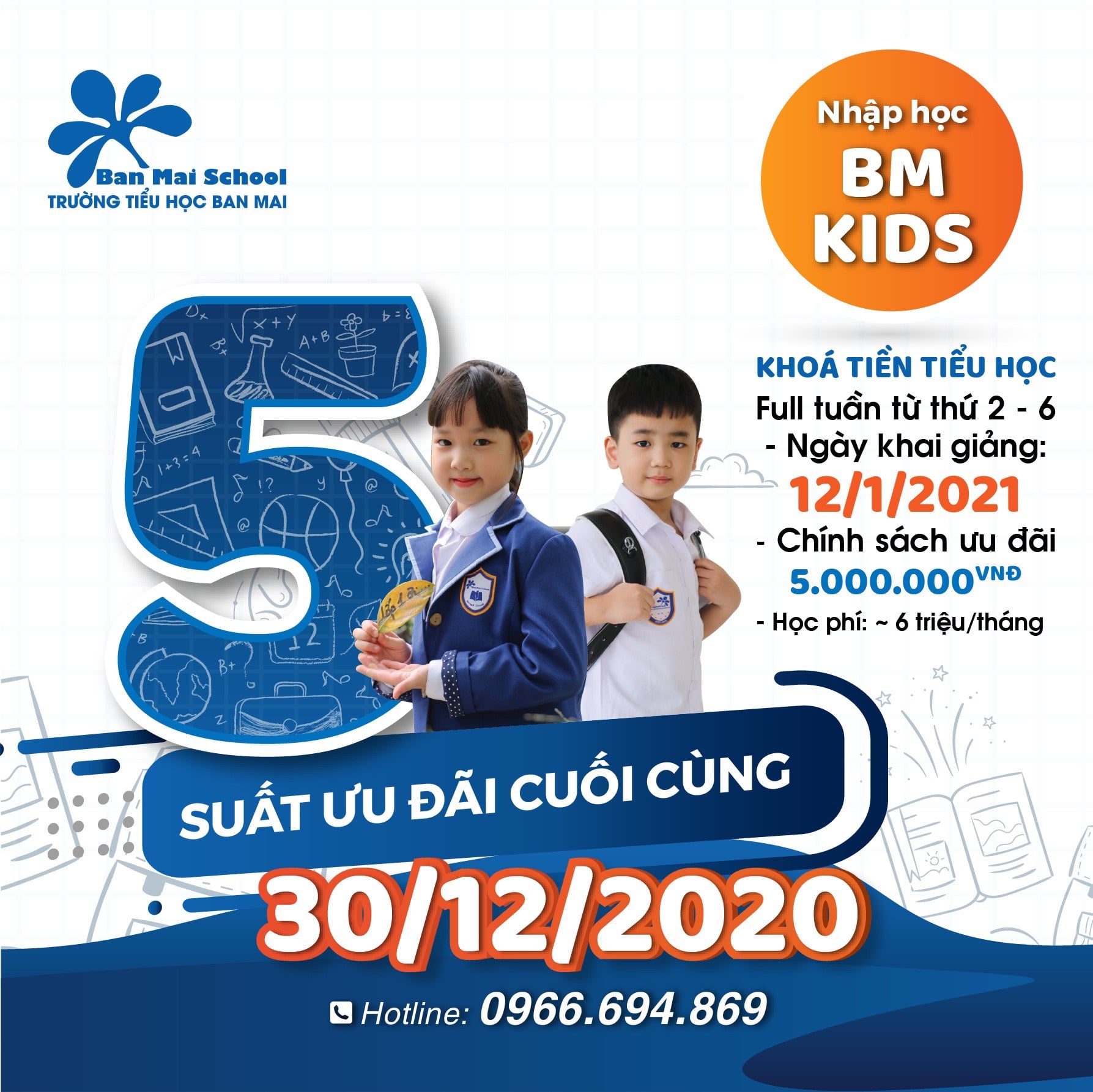CÒN 5 SUẤT ƯU ĐÃI CUỐI CÙNG CHO CÁC BỐ MẸ NHANH TAY ĐĂNG KÝ NHẬP HỌC TRƯỚC NGÀY 31/12/2020HOTLINE: 0966694869