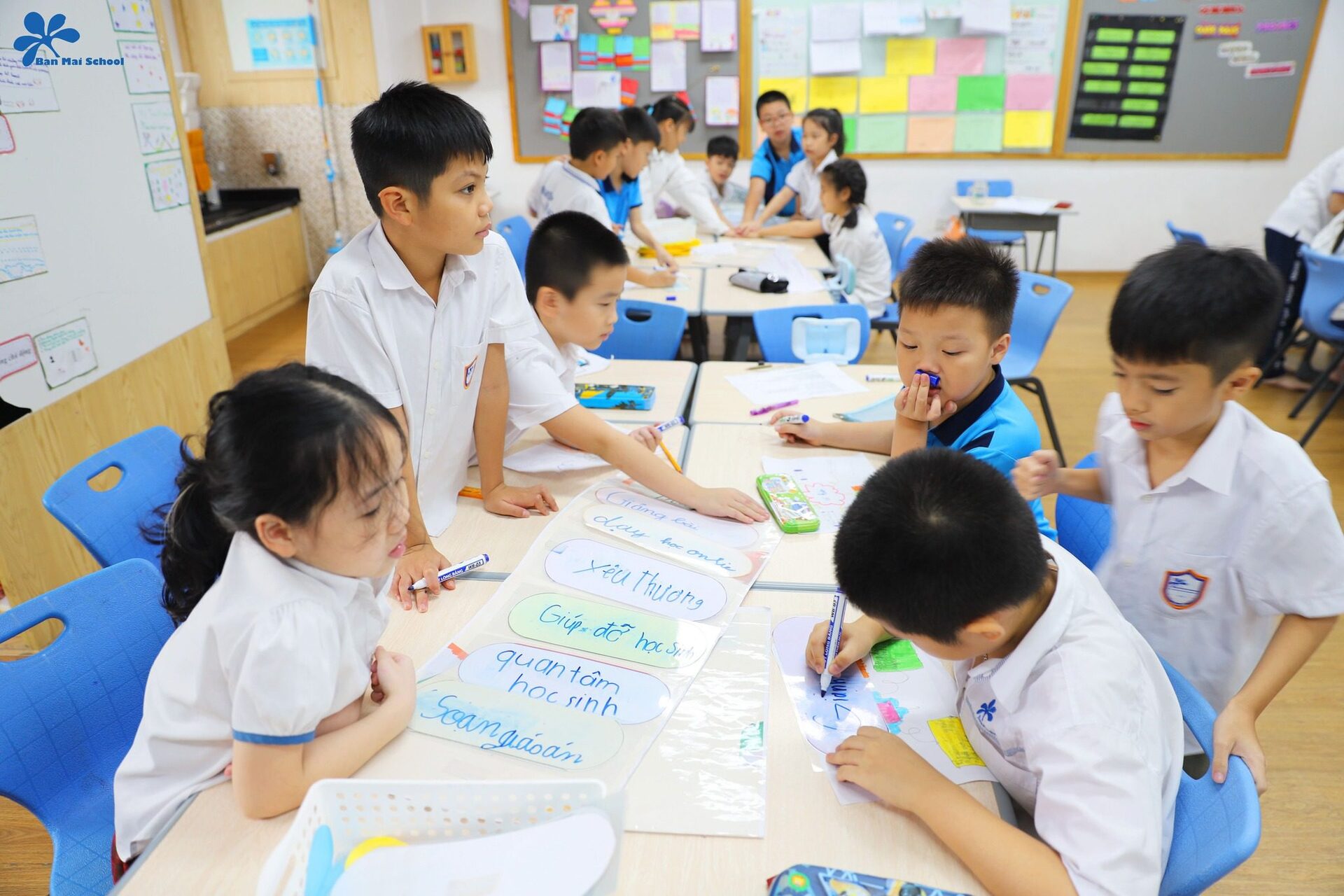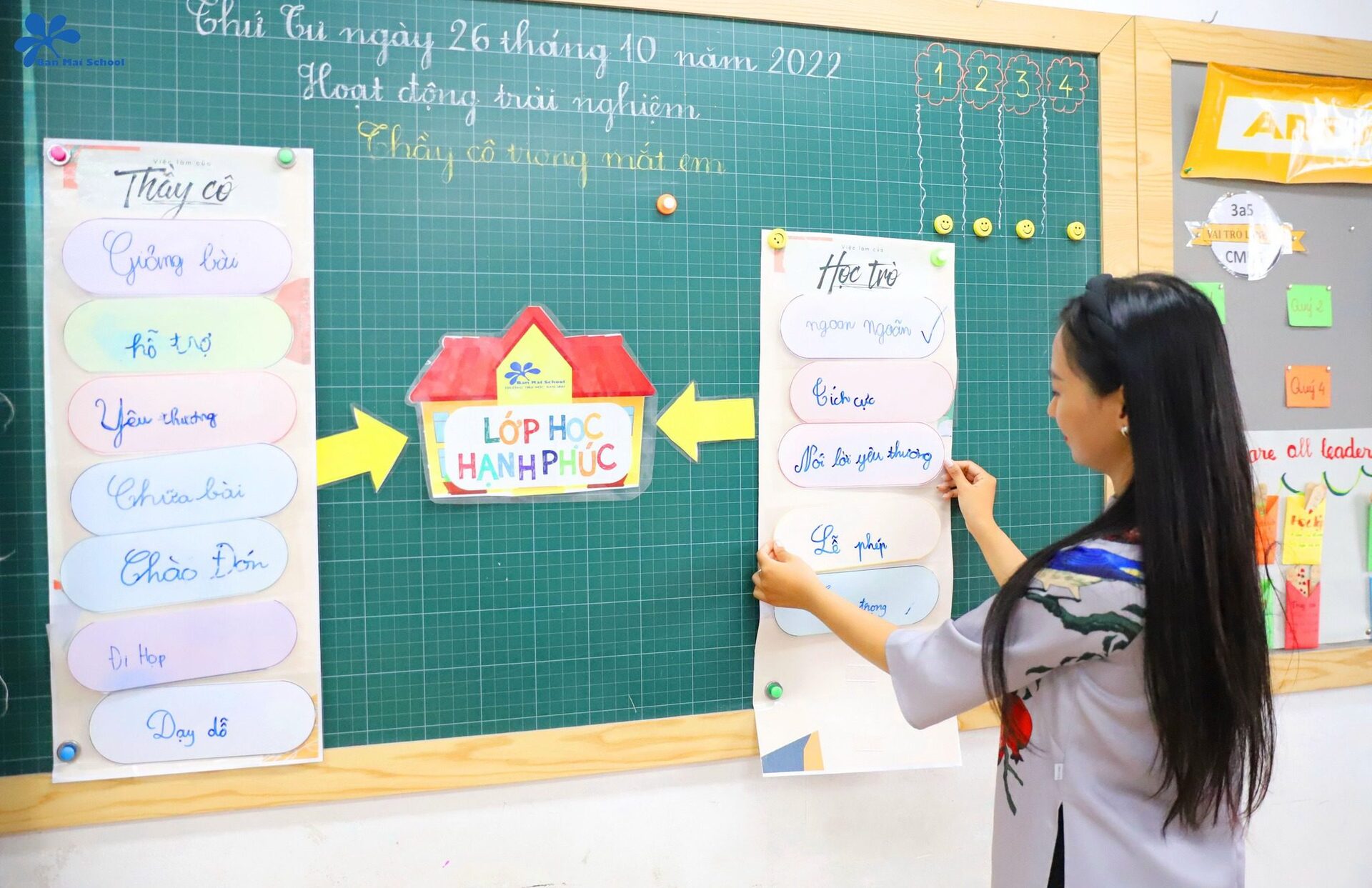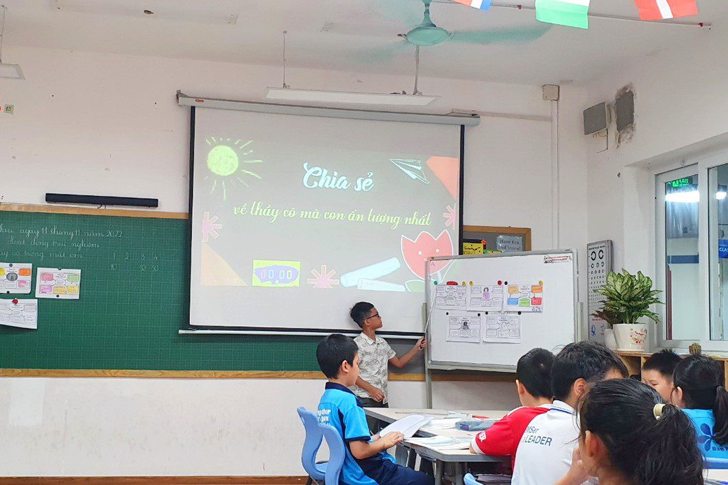 Bên cạnh đó, thông qua một video về công việc của thầy cô giáo cùng cán bộ, nhân viên tại Ban Mai, học sinh cũng có cơ hội nhận ra thông điệp: Mỗi thành viên trong nhà trường đều có một vai trò và nhiệm vụ khác nhau. Dù vất vả, gian nan nhưng mọi người vẫn luôn nỗ lực hết mình để mang lại cho các con những giá trị tốt đẹp nhất.