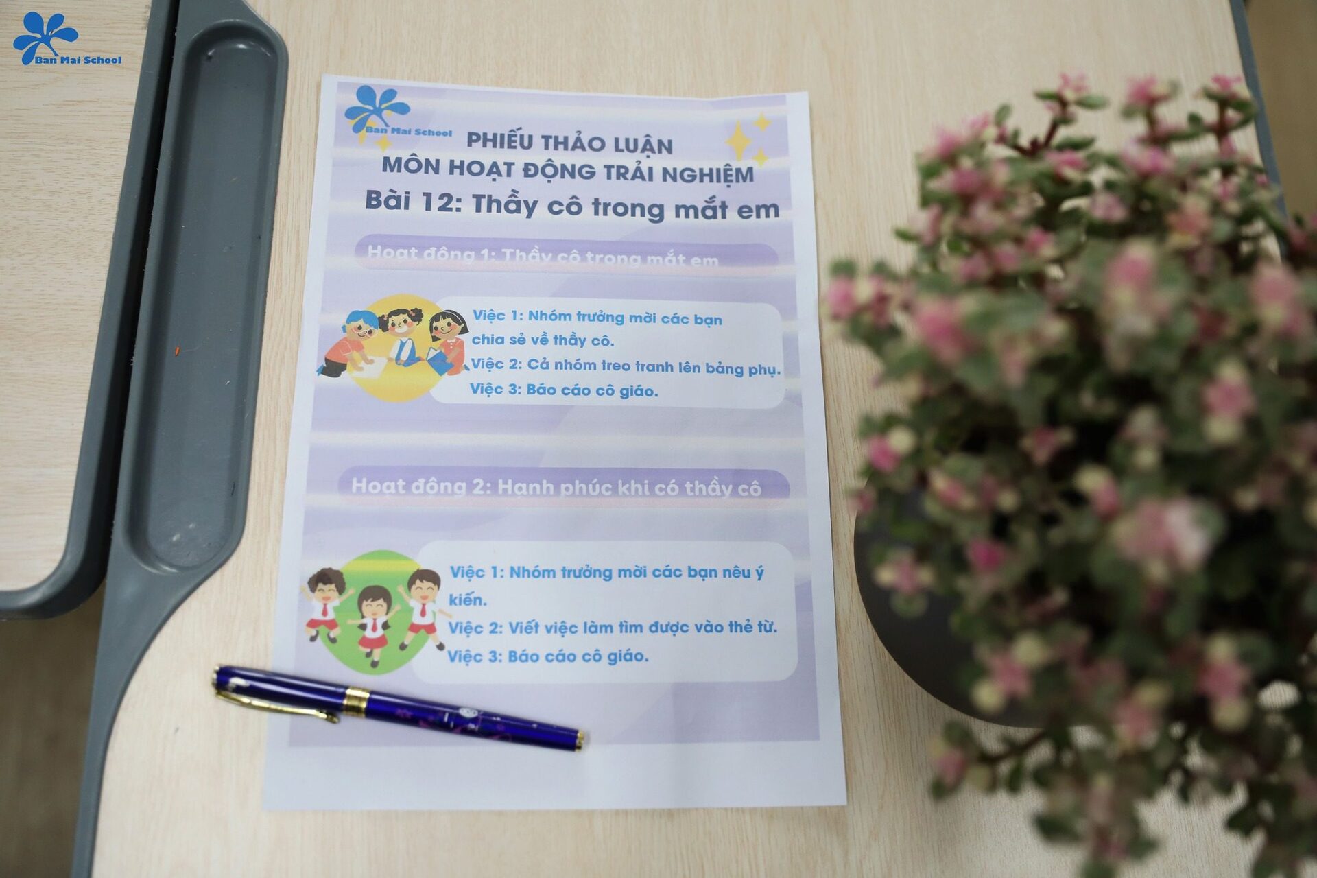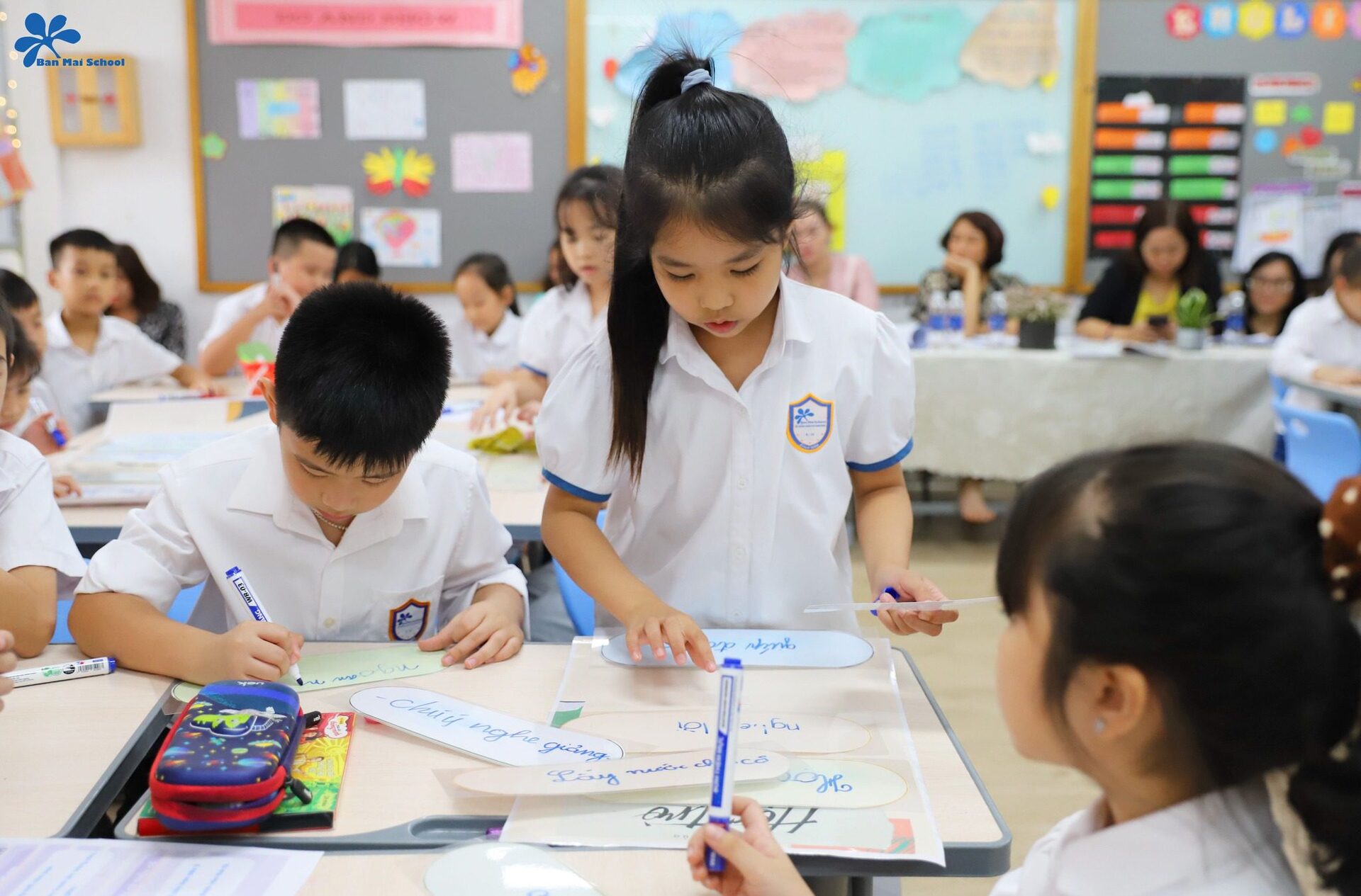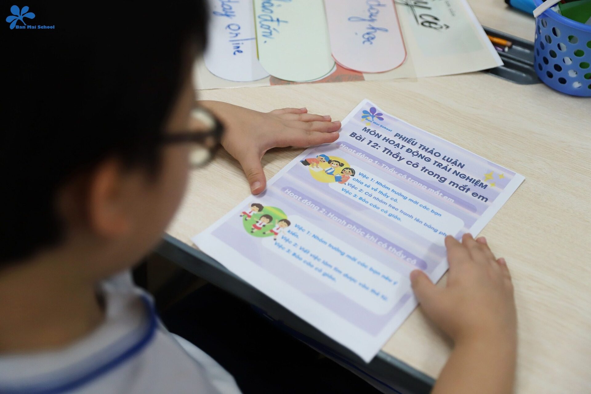 Bên cạnh đó, thông qua một video về công việc của thầy cô giáo cùng cán bộ, nhân viên tại Ban Mai, học sinh cũng có cơ hội nhận ra thông điệp: Mỗi thành viên trong nhà trường đều có một vai trò và nhiệm vụ khác nhau. Dù vất vả, gian nan nhưng mọi người vẫn luôn nỗ lực hết mình để mang lại cho các con những giá trị tốt đẹp nhất.