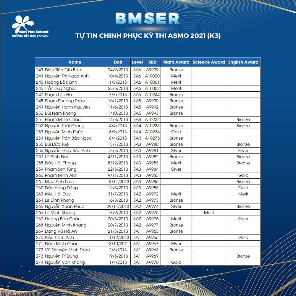 569 là tổng số giải thưởng mà BMSers đã giành được tại vòng 1 kỳ thi đánh giá năng lực Khoa học, Toán và Tiếng Anh toàn cầu ASMO.