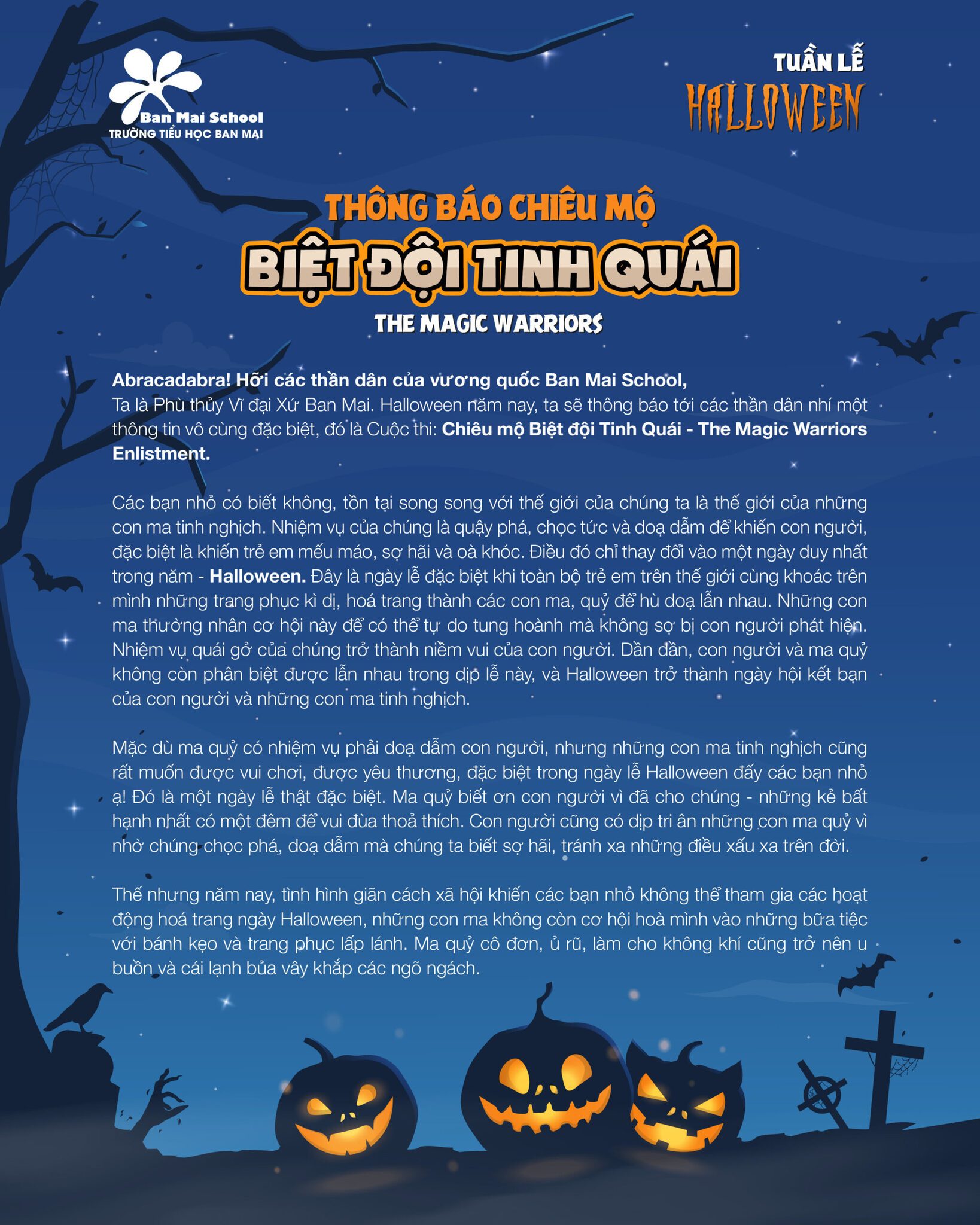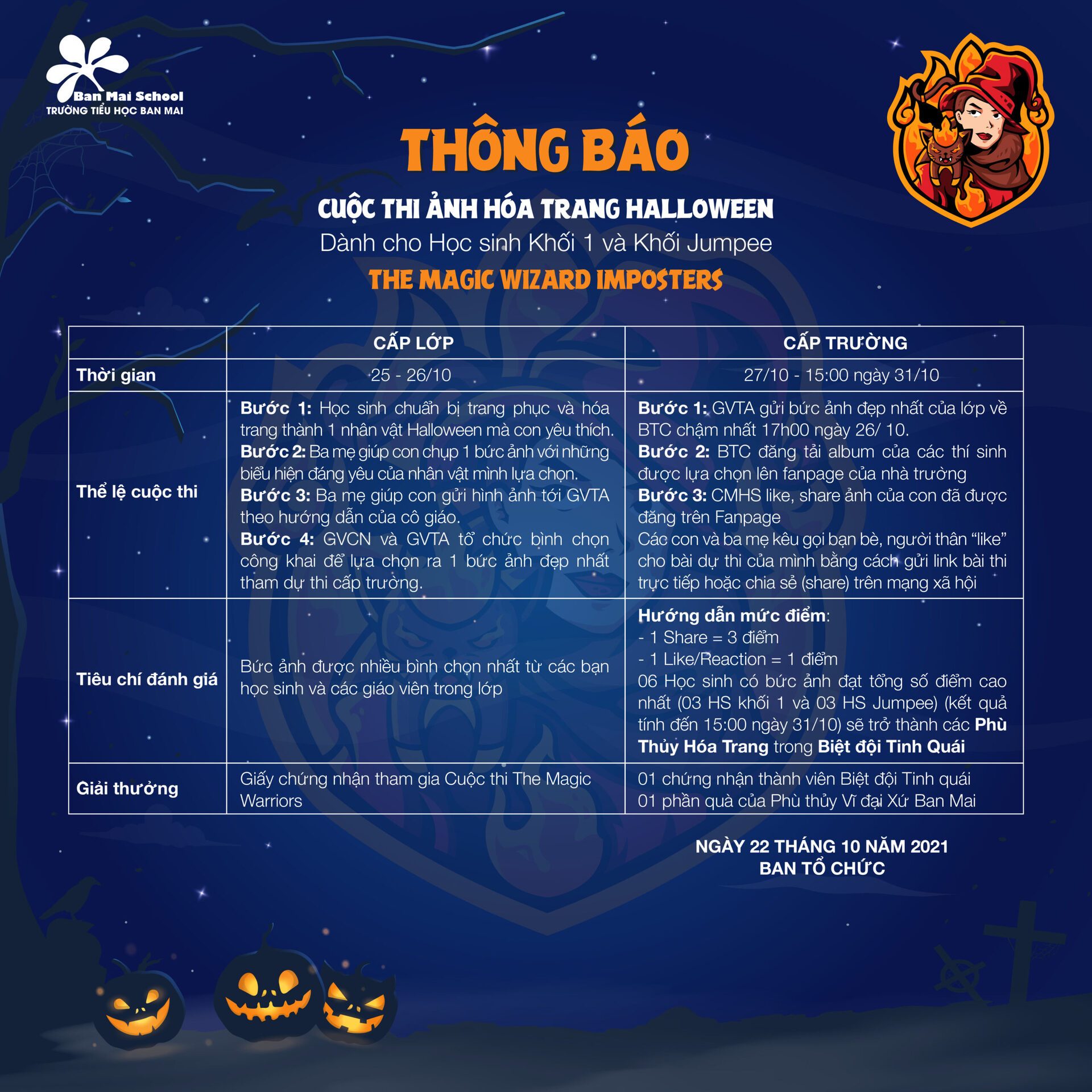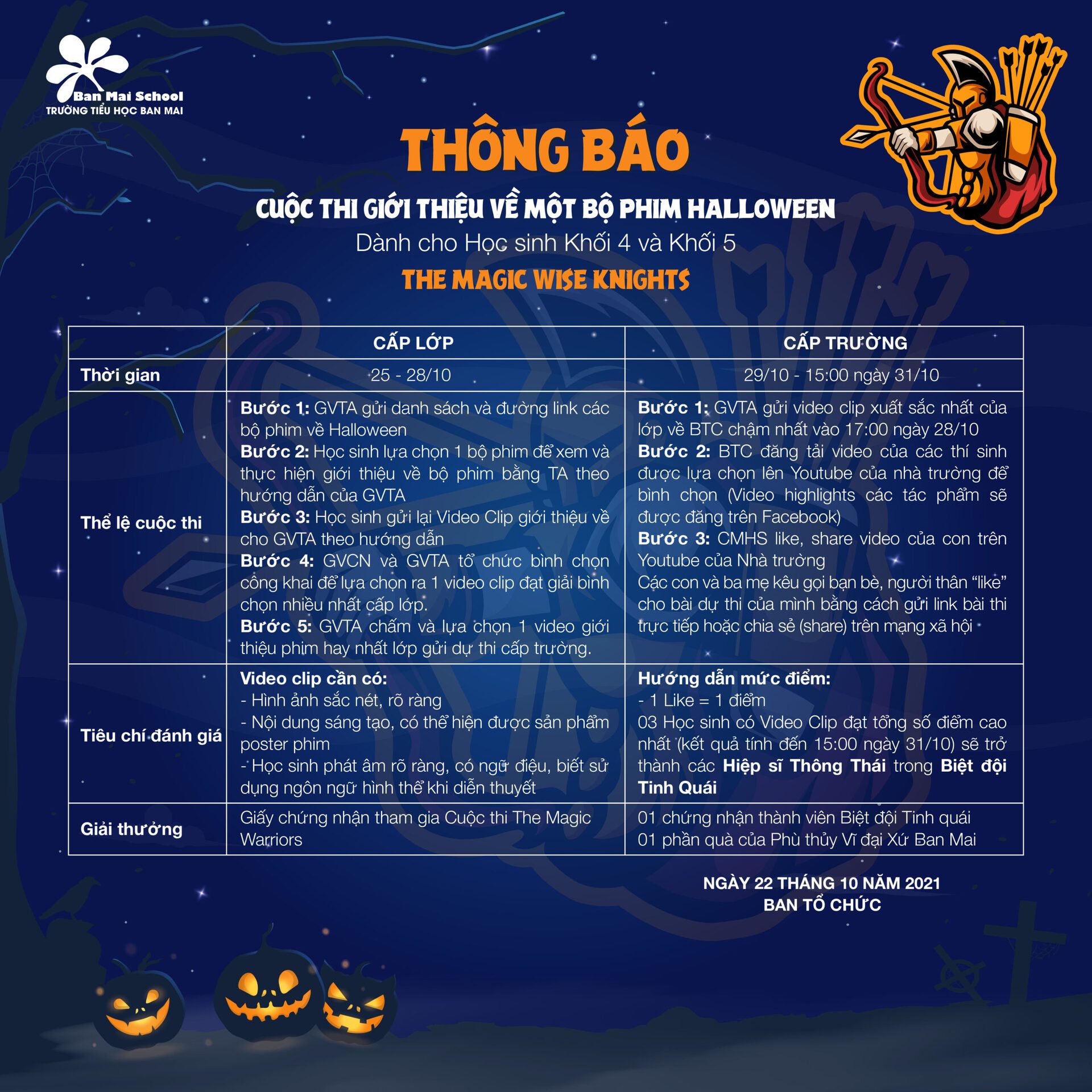 Nào, giờ cùng đọc kỹ các hướng dẫn cụ thể được thầy cô từng khối lớp đã gửi, và nhanh tay đăng ký tham gia các chuỗi thử thách đặc biệt trong mùa Halloween 2021 nhé.