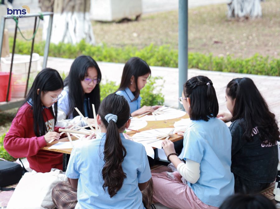 BMSers hào hứng trong hoạt động trải nghiệm làm quạt giấy truyền thống