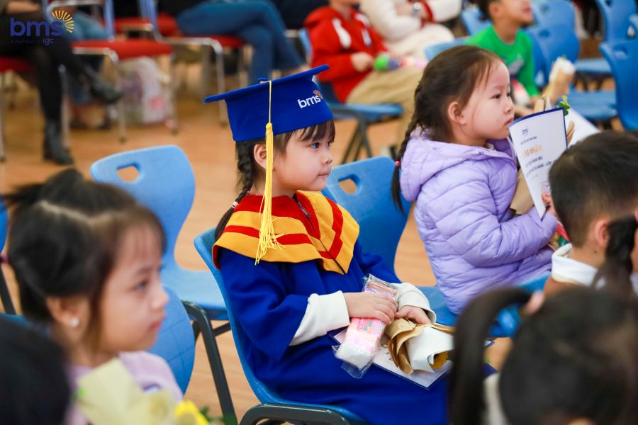 Bên cạnh đó, buổi lễ cũng là dịp BMS vinh danh và chúc mừng các bạn nhỏ đã xuất sắc vượt qua bài đánh giá năng lực để chính thức trở thành thành viên của hệ Song ngữ Tài năng. Đây là kết quả của sự cố gắng, tự tin và bản lĩnh mà các em đã thể hiện trong suốt quá trình trải nghiệm và rèn luyện. Việc được lựa chọn vào hệ Song ngữ Tài năng không chỉ ghi dấu bước ngoặt quan trọng trong hành trình học tập của mỗi học sinh, mà còn mở ra cánh cửa để các em tiếp cận một môi trường giáo dục hiện đại, toàn diện và giàu tính hội nhập – nơi các em sẽ tiếp tục phát triển trí tuệ, kỹ năng ngôn ngữ, tư duy phản biện và năng lực lãnh đạo để trở thành một công dân toàn cầu trong tương lai.
