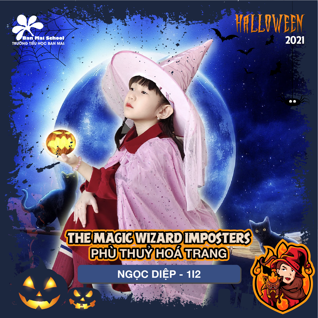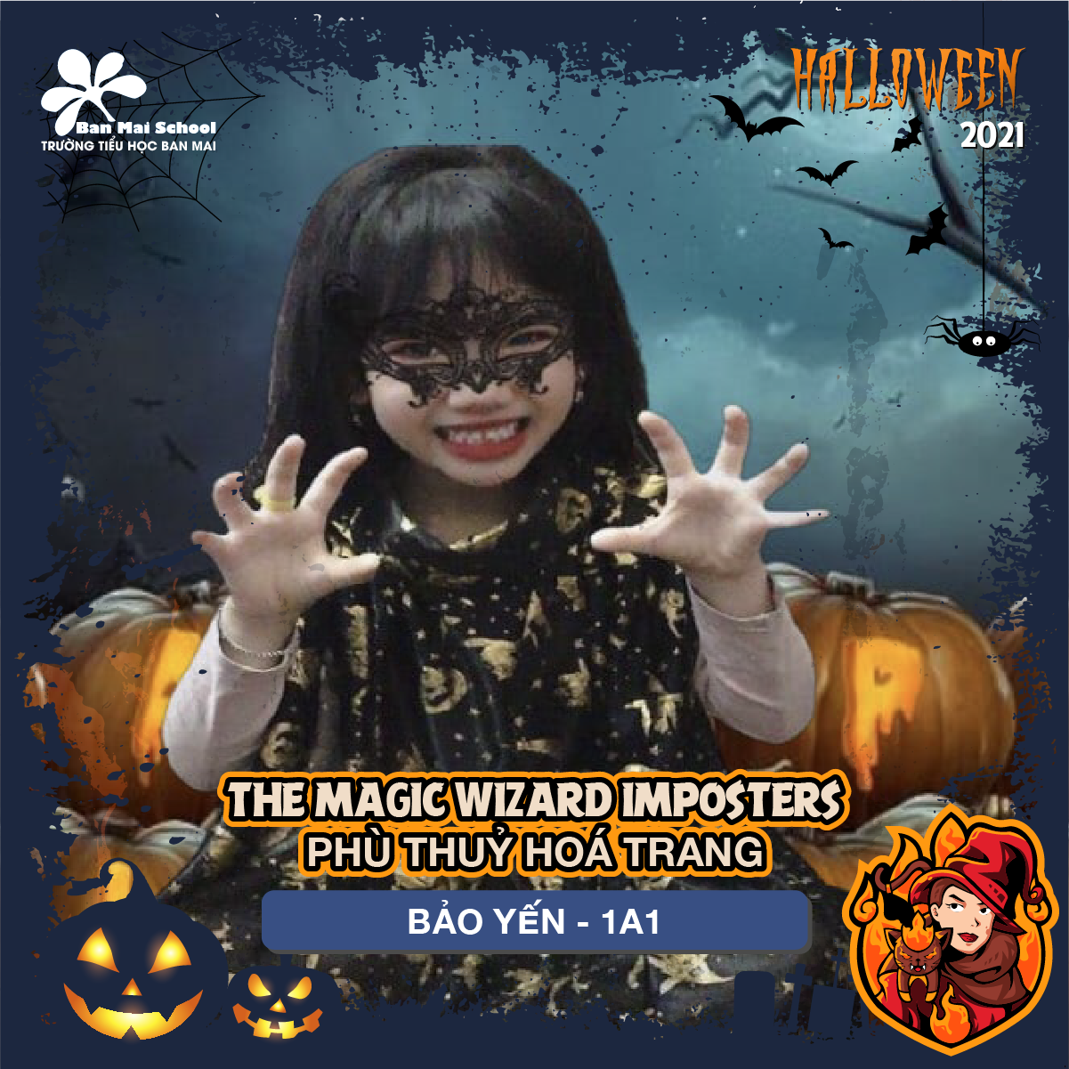 Khép lại tuần lễ sôi động, khép lại những bình chọn trên Fanpage và Youtube của trường Tiểu học Ban Mai, 18 gương mặt BMSers ở 6 khối lớp đã chính thức lộ diện, tự hào là thành viên của Biệt đội Tinh quái Halloween 2021.