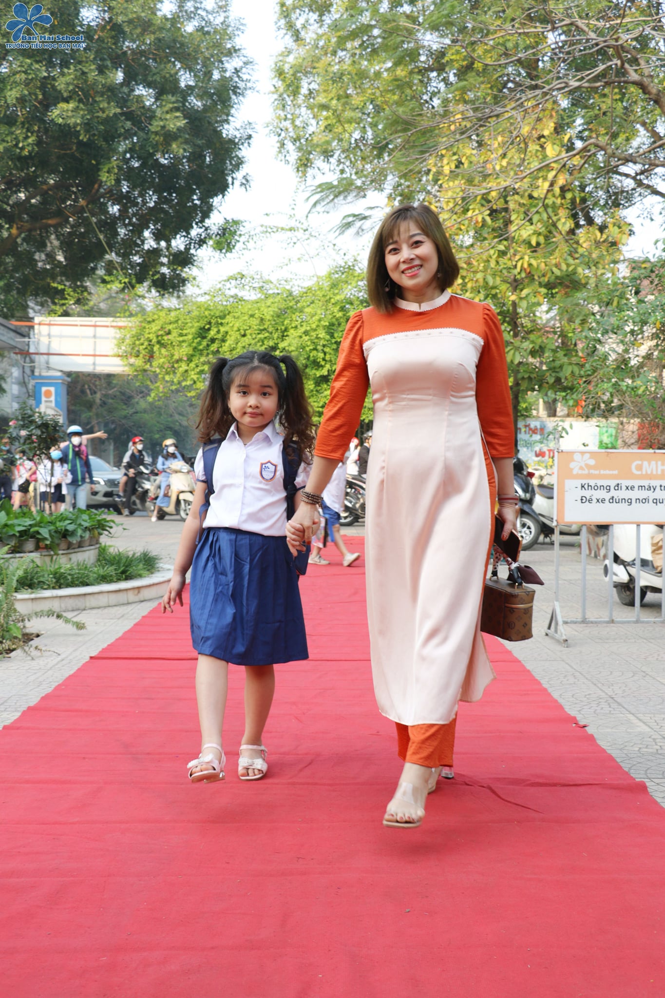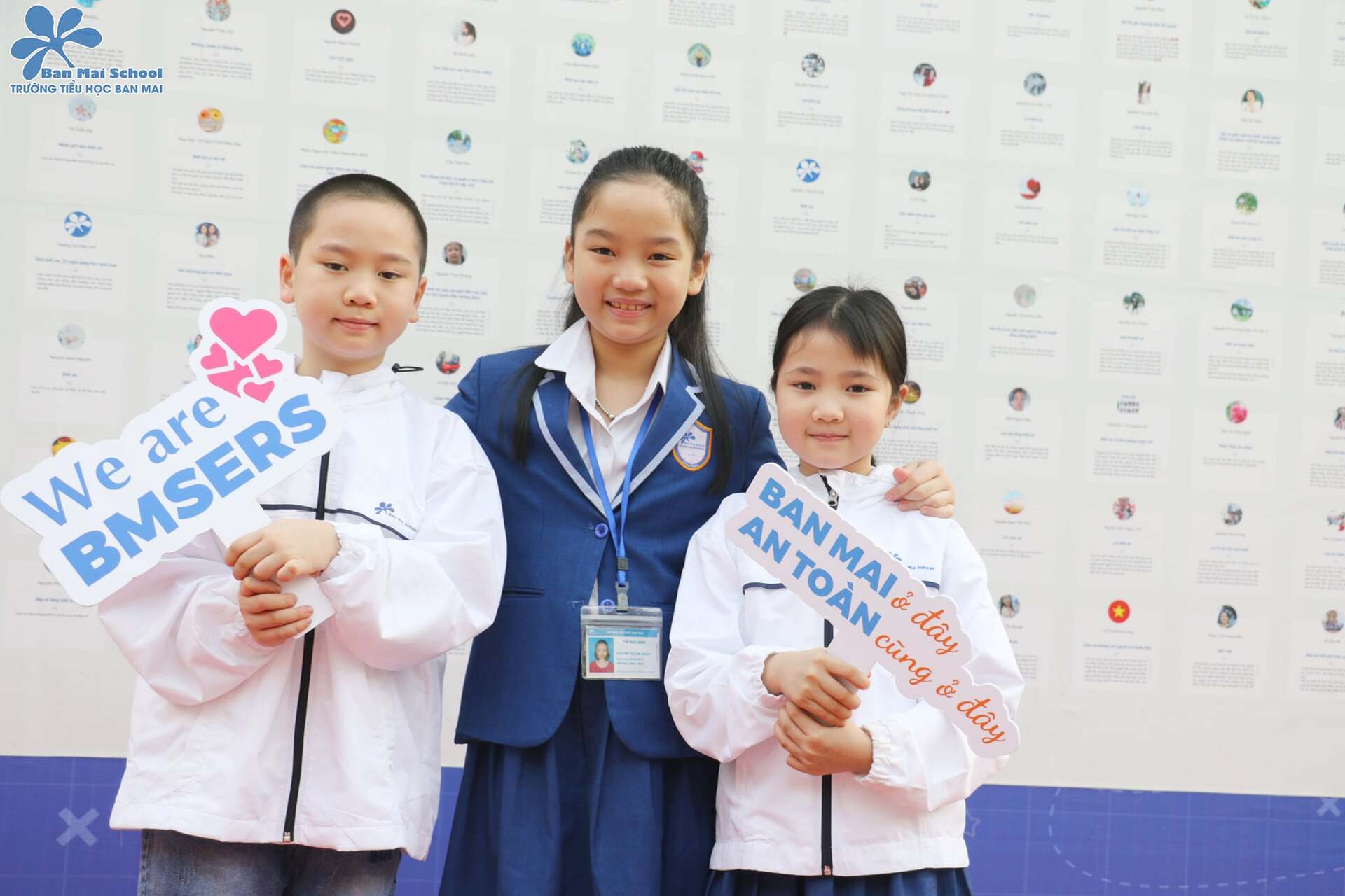 Tất cả như vỡ òa trong những đôi mắt tròn xoe, vừa ngạc nhiên, vừa thích thú khi được các anh chị khối 3 vẫy cờ đón chào trên thảm đỏ ngay từ khi các con xuất hiện ở cổng trường. Tiến thêm một chút vào bên trong, thầy cô đón đợi ở “Bức tường check in” mang thông điệp Biết ơn, sẵn sàng lưu giữ những khoảnh khắc đầu tiên ý nghĩa dành tặng cho bố mẹ cùng các con.