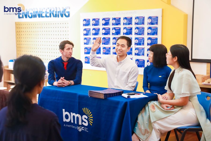 Sau khi tham gia các hoạt động trải nghiệm và gắn kết thú vị cùng với các con, Cha mẹ đã có những phút giây lắng nghe và trao đổi cùng chuyên gia về những quan niệm đúng – sai xoay quanh việc học tập song ngữ. Những góc nhìn mới mẻ và những giải đáp tận tình đã giúp cha mẹ có thêm sự an tâm và định hướng rõ ràng hơn trong hành trình giáo dục con, đồng thời nắm được những thông tin bổ ích về định hướng và chương trình giáo dục song ngữ tại BMS.