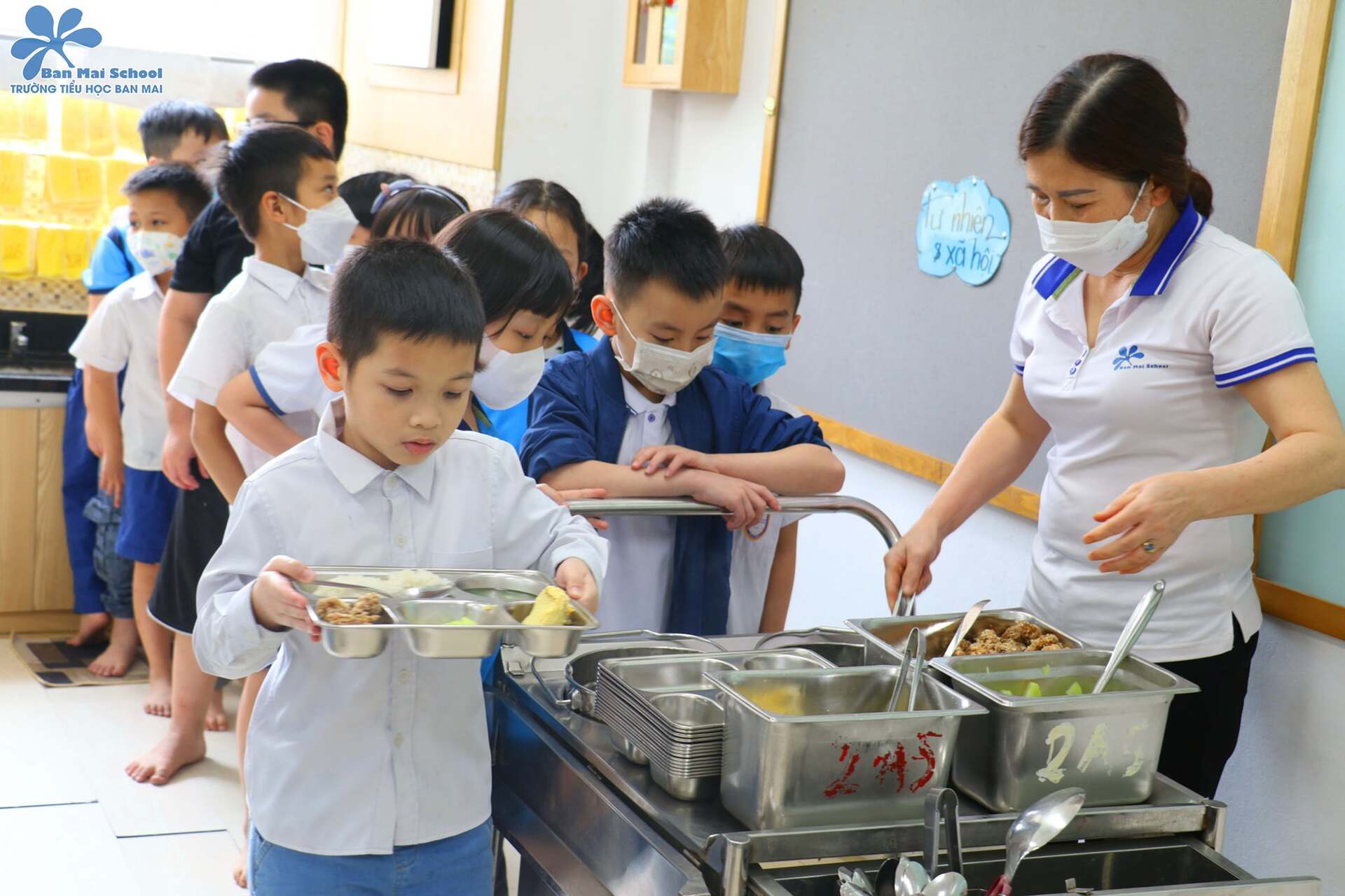 Bữa cơm trưa nóng hổi hôm nay sẽ ngon hơn, vì chúng con được ăn cùng các bạn trong lớp.