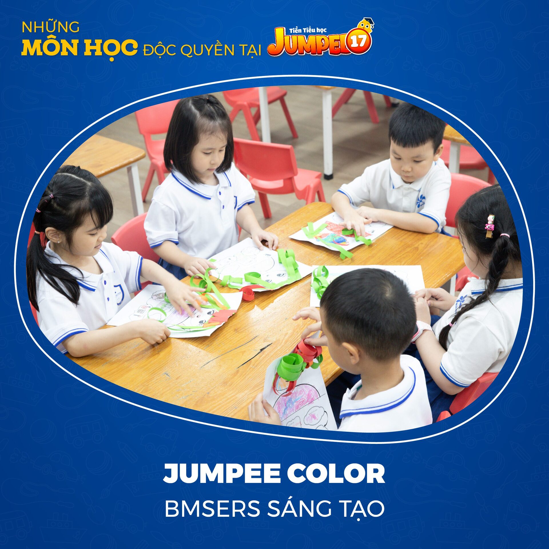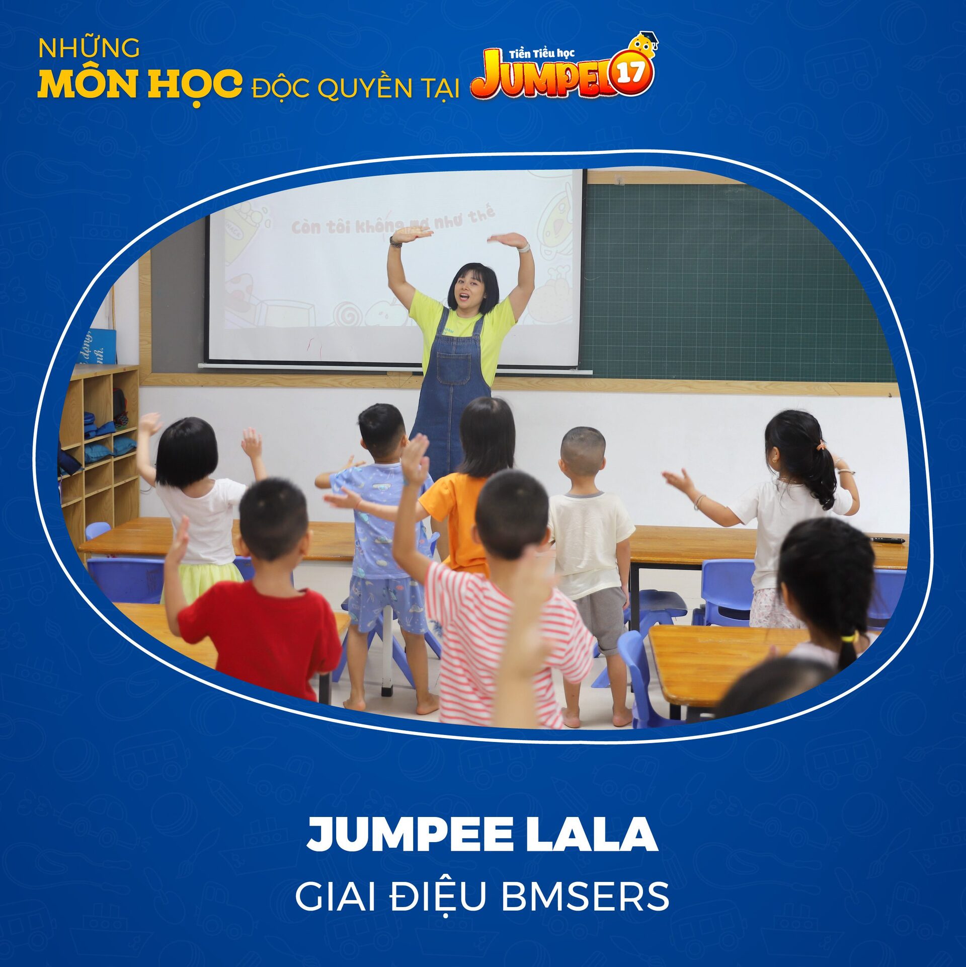 Lớp học vui nhộn, phương pháp giảng dạy cuốn hút phù hợp tâm sinh lý trẻ cùng những môn học độc quyền thiết kế riêng đã mang lại nhiều niềm vui, sự hứng khởi cho học sinh 5 tuổi khối tiền tiểu học Jumpee 17 tại Ban Mai School.
