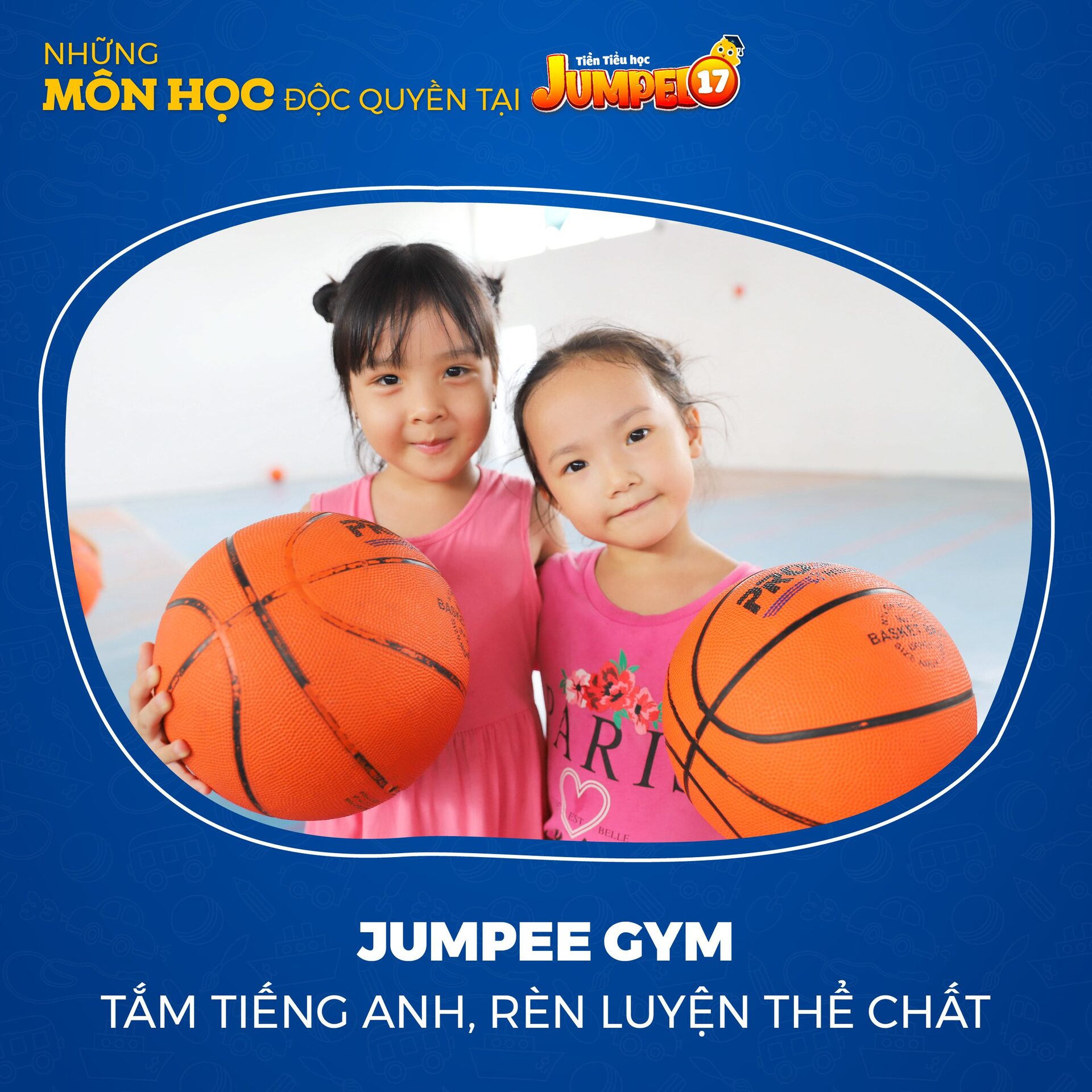 Bên cạnh việc được “tắm” trong môi trường Tiếng Anh Cambridge tự nhiên, đầy cảm hứng, các bạn nhỏ sẽ được rèn luyện thể chất và vận động với Jumpee Gym cùng huấn luyện viên bằng Tiếng Anh, học bơi chuyên nghiệp với Jumpee Aquakids tại bể bơi Dolphin 4 mùa.