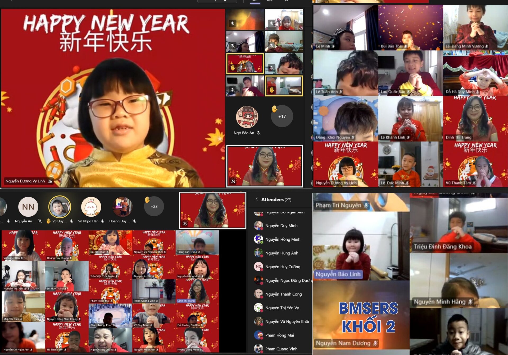 Nhuộm đỏ không gian lớp học online với những phông nền đậm màu sắc Tết,, các BMSers đã đón Tết sớm qua những giờ học Tiếng Anh đầy sôi nổi, hào hứng traong tuần học cuối cùng của năm Tân Sửu cùng những nội dung học tập theo chủ điểm “Bên nhau là Tết”.
