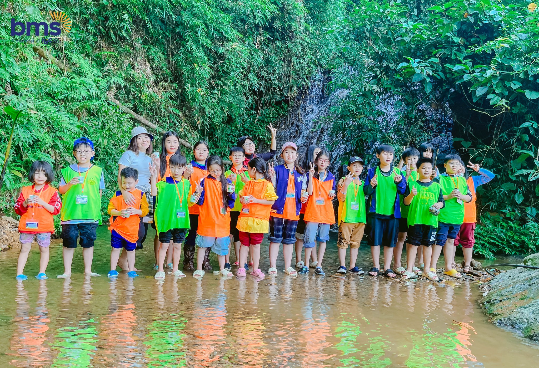 Giữa sắc xanh bạt ngàn của núi rừng, BMSers khối 3 đã hòa mình vào thiên nhiên, quan sát từng chiếc lá, từng dòng suối và tìm thấy trong mỗi điều nhỏ bé một câu chuyện thú vị. Những “kho báu thiên nhiên” như chiếc lá lạ, viên đá nhỏ hay chú côn trùng bé xíu trở thành bài học sống động giúp các con hiểu hơn về vẻ đẹp và sự đa dạng của môi trường tự nhiên.