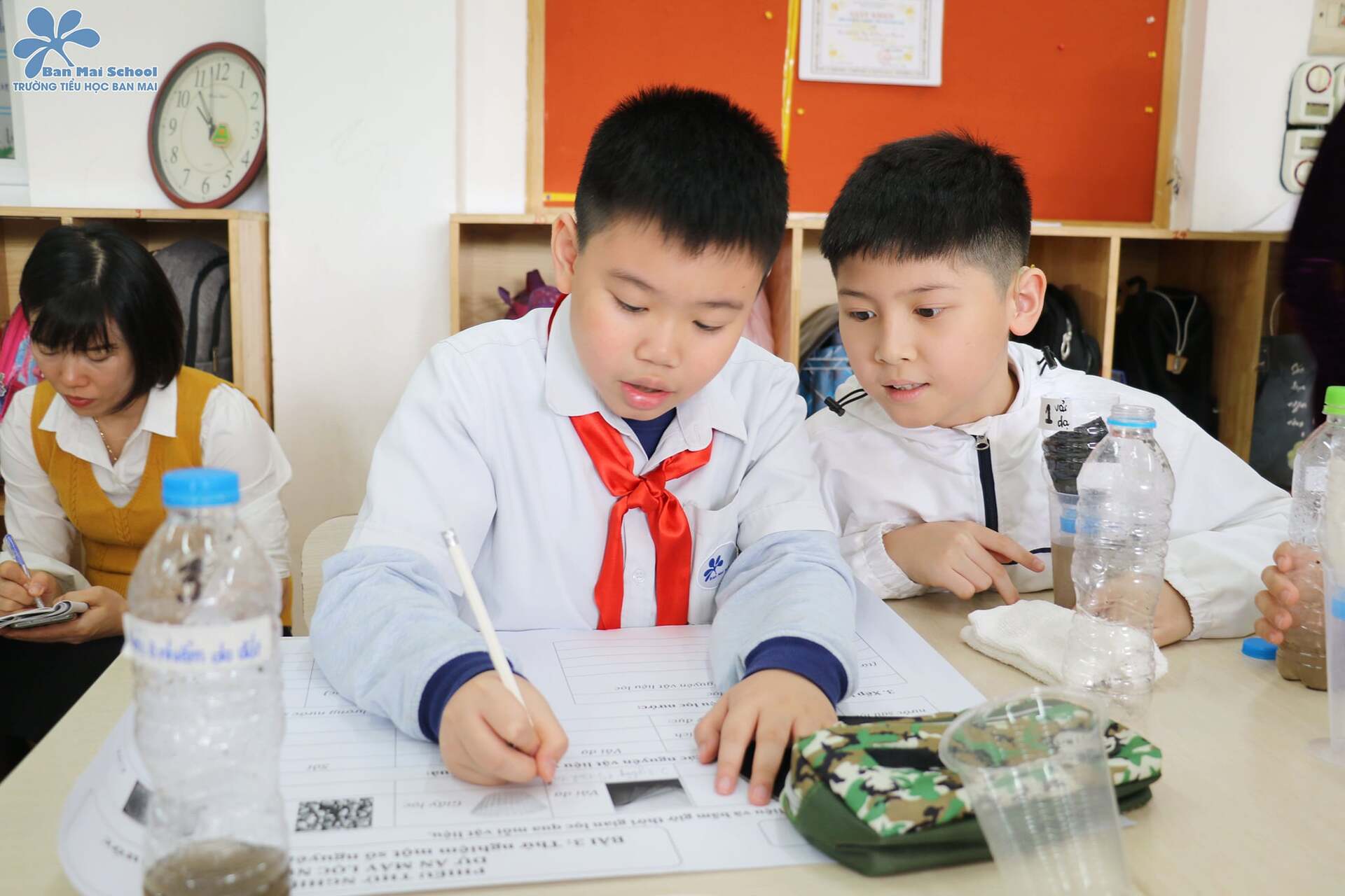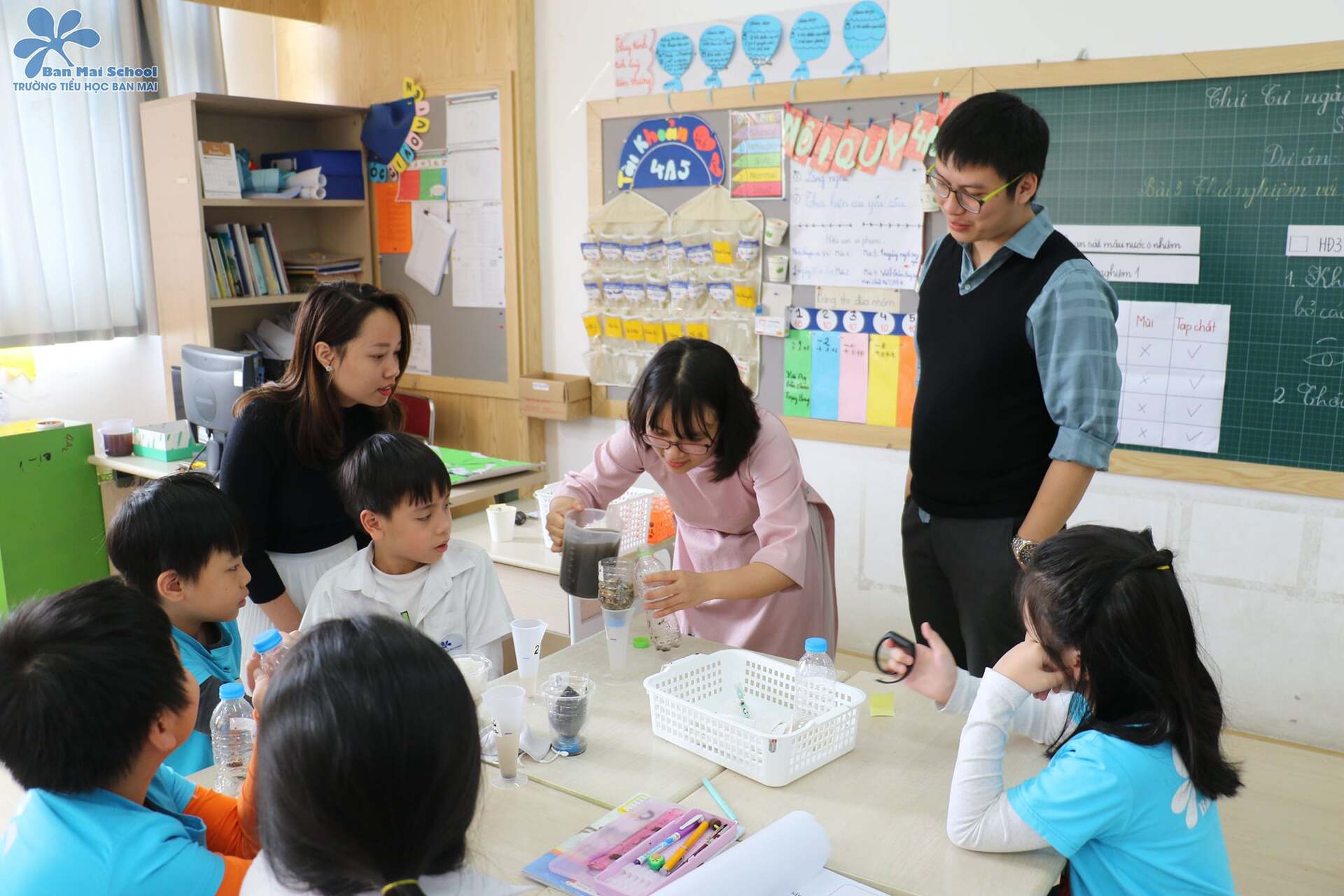 Trong dự án máy lọc nước, các BMSers khối 4 đã từng được khám phá một số nguyên vật liệu dùng để lọc nước. Dự án giúp các con hiểu được về tính chất của chúng, đồng thời phân tích, so sánh hiệu quả của các nguyên vật liệu lọc nước khác nhau.
