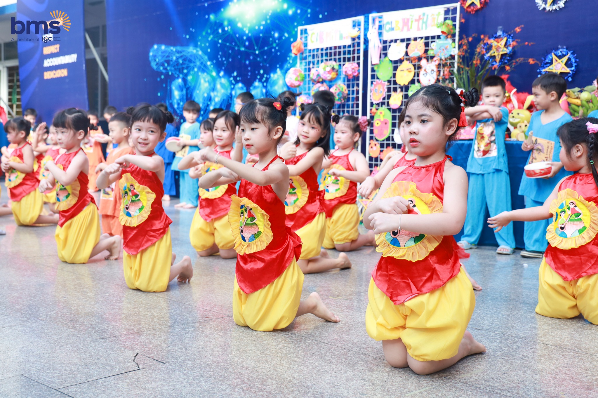 Ngày 3/10 vừa qua, sân trường BMS Hà Nội - Trường Tiểu học Ban Mai bừng sáng trong sắc màu Trung thu rộn rã. Từ sớm, tiếng trống lân vang lên giòn giã, kéo theo những gương mặt rạng rỡ, háo hức của các BMSers. Khắp khuôn viên trường, đèn lồng rực rỡ, mâm ngũ quả được bày biện tinh tế, và những điệu cười trong trẻo đã biến “Vui hội Trăng Rằm” thành một ngày hội ngập tràn năng lượng và yêu thương.
